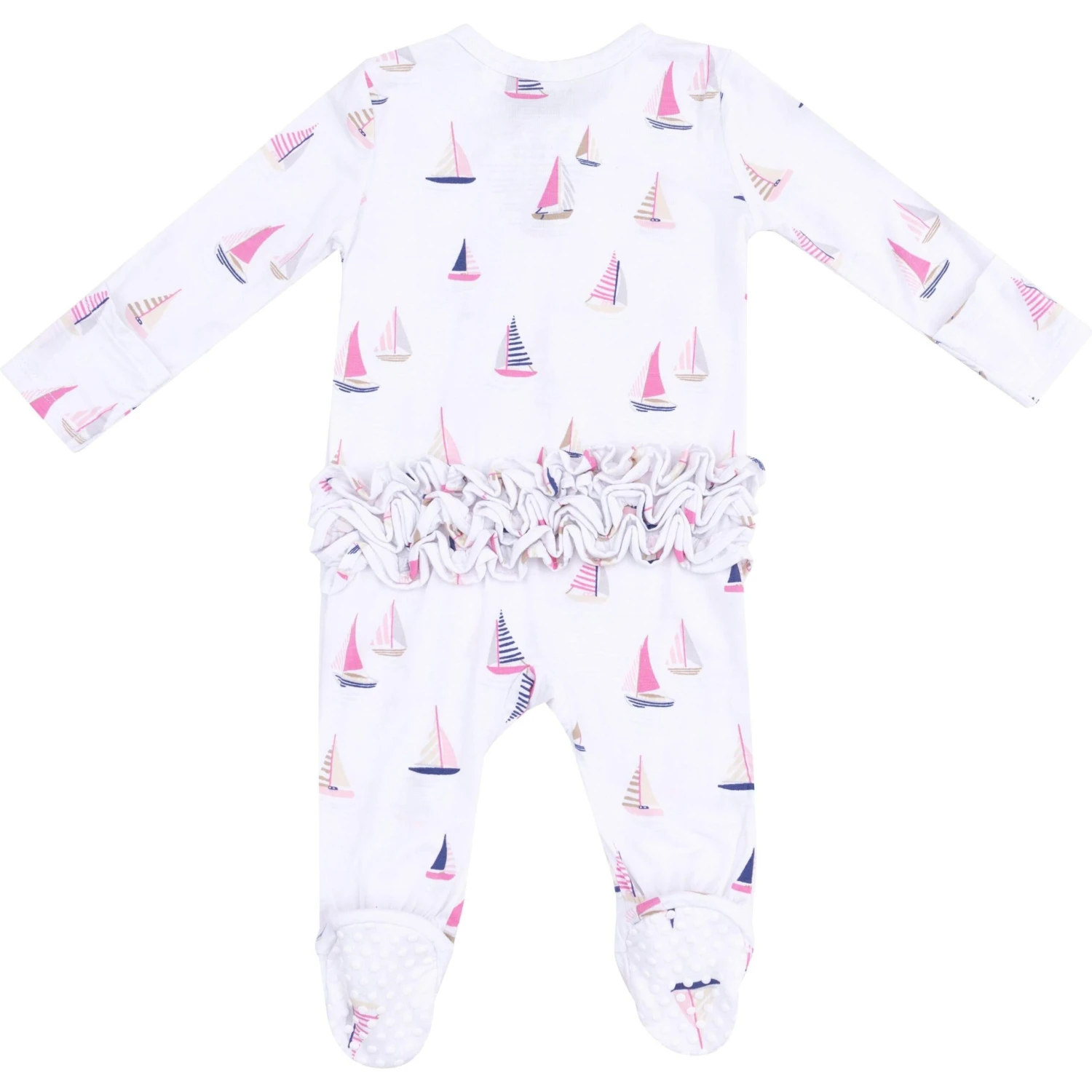 Angel Dear Sailboats Pink 2-Way Zipper Ruffle Back Footie