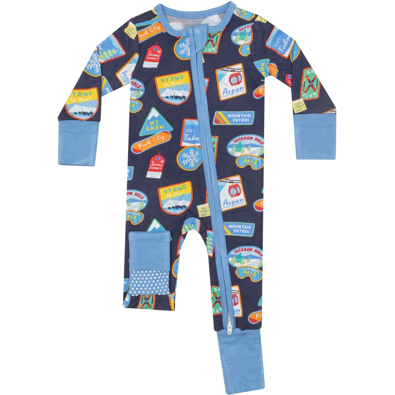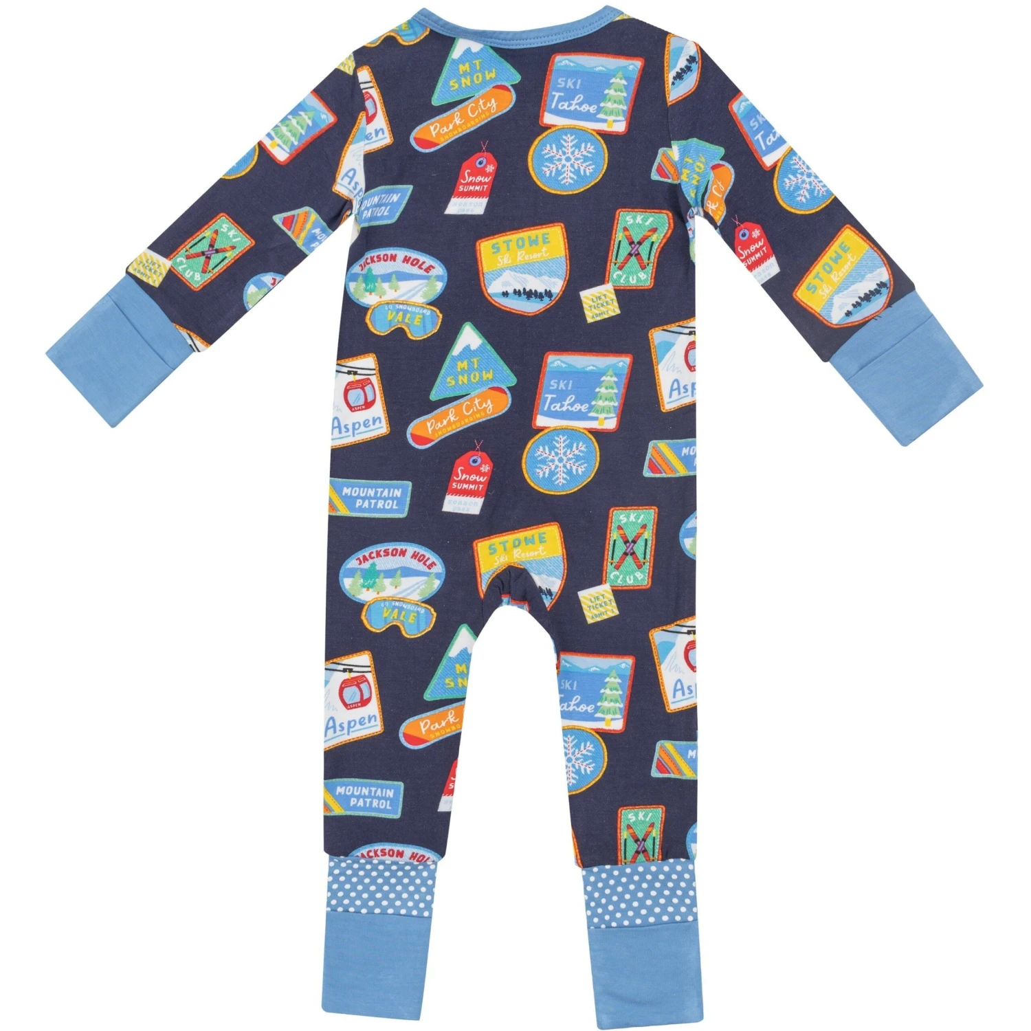 Angel Dear Vintage Ski Patches 2-Way Zipper Romper