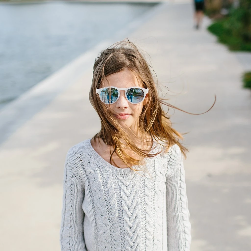 Polarized: These sunglasses have polarized lenses to help reduce harsh glare and improve your child’s visibility in the sun. Plus, your kid will look awesome behind our colorful mirrored lenses!