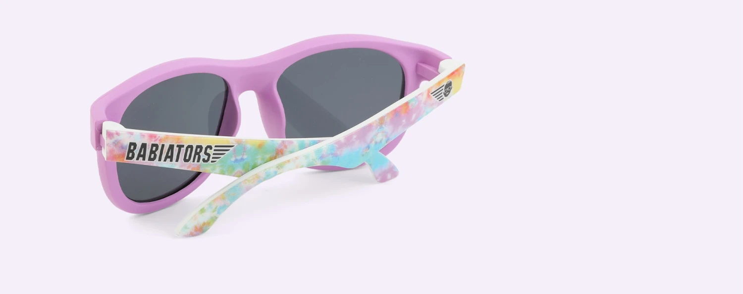 Our award-winning Babiators sunglasses for babies and kids with 100% UV protection and flexible, durable frames. Our beloved navigators in a limited edition bright, springy tie dye print!