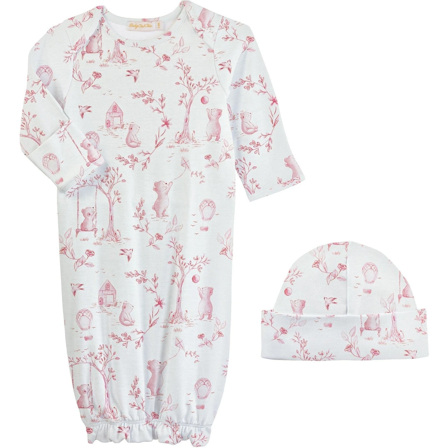 Baby Club Chic Toile De Jouy Pink Gown & Hat Set