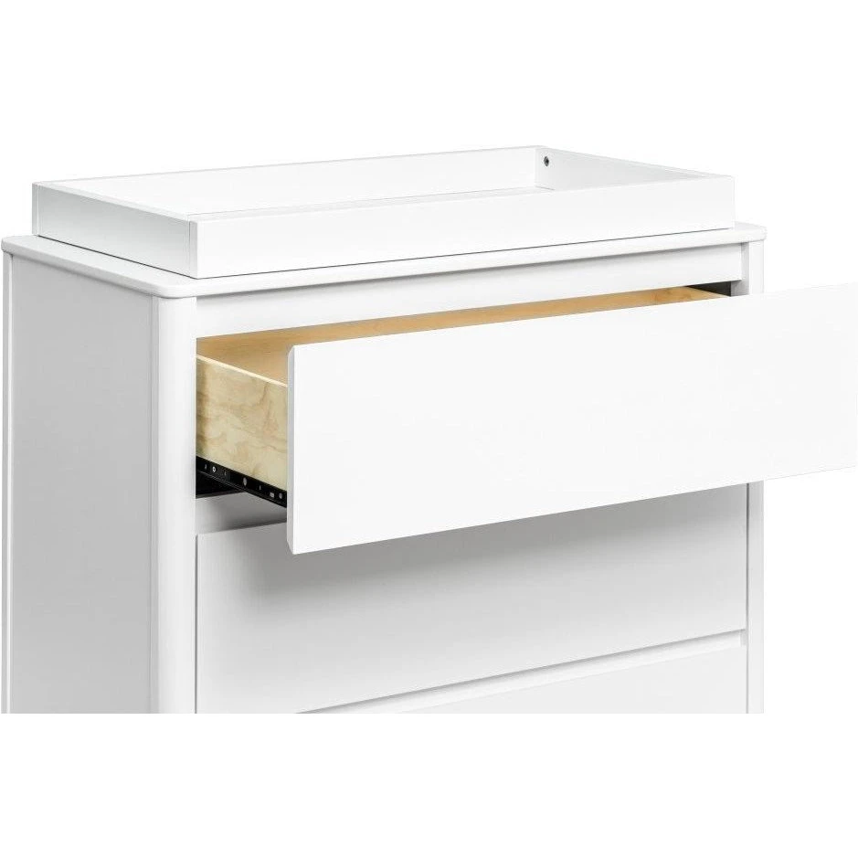 The Bento 3-Drawer Changer Dresser celebrates modern minimalism with clean hidden drawer pulls, softly curved edges and a raised platform base. This compact unit provides a range of practical storage possibilities with three smooth-glide drawers and an included removable changing tray. Designed to pair with the Bento 3-in-1 Convertible Storage Crib for a refreshingly sophisticated nursery.