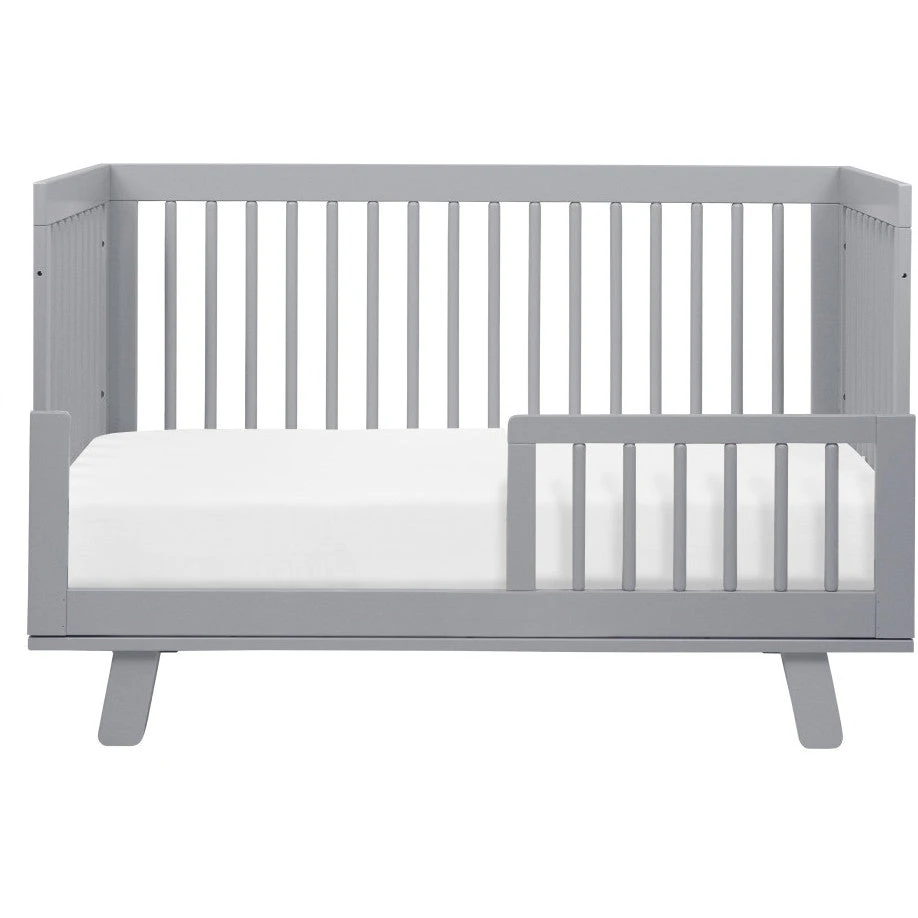 Delight in mid-century modern appeal with the Hudson 3-in-1 Convertible Crib. Featuring stylish rounded spindles and an open modern silhouette, the Hudson Crib is made with eco-friendly, non-toxic materials backed with GREENGUARD GOLD certification. An included toddler bed conversion kit allows you to seamlessly convert from crib to toddler bed to daybed, while the additional Junior bed conversion kit (M4299, sold separately) means that your Hudson can grow along with your babe. And whether you prefer a contemporary or time-honored palette for your nursery, Hudson has you covered from modern greys, clean white, and playful two-tones.
