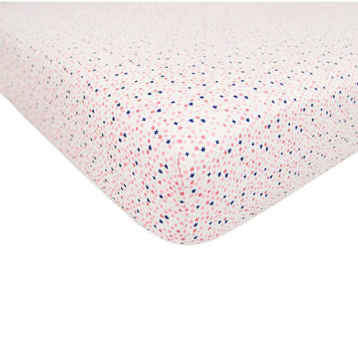 Inspired by iconic pop art graphics, the IN BLOOM Fitted Mini Crib Sheet explores a bold palette with a field of petite coral, cotton candy, and navy blossoms. Our machine washable sheets fit standard crib mini mattresses and are constructed from 100% poplin, a lightweight durable cotton weave.