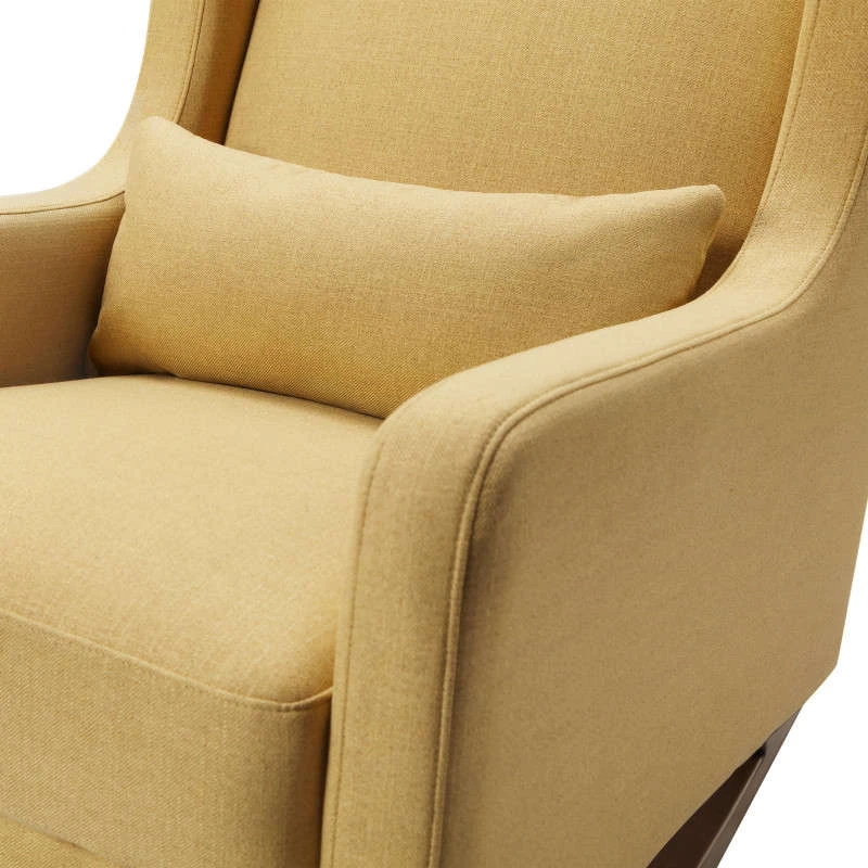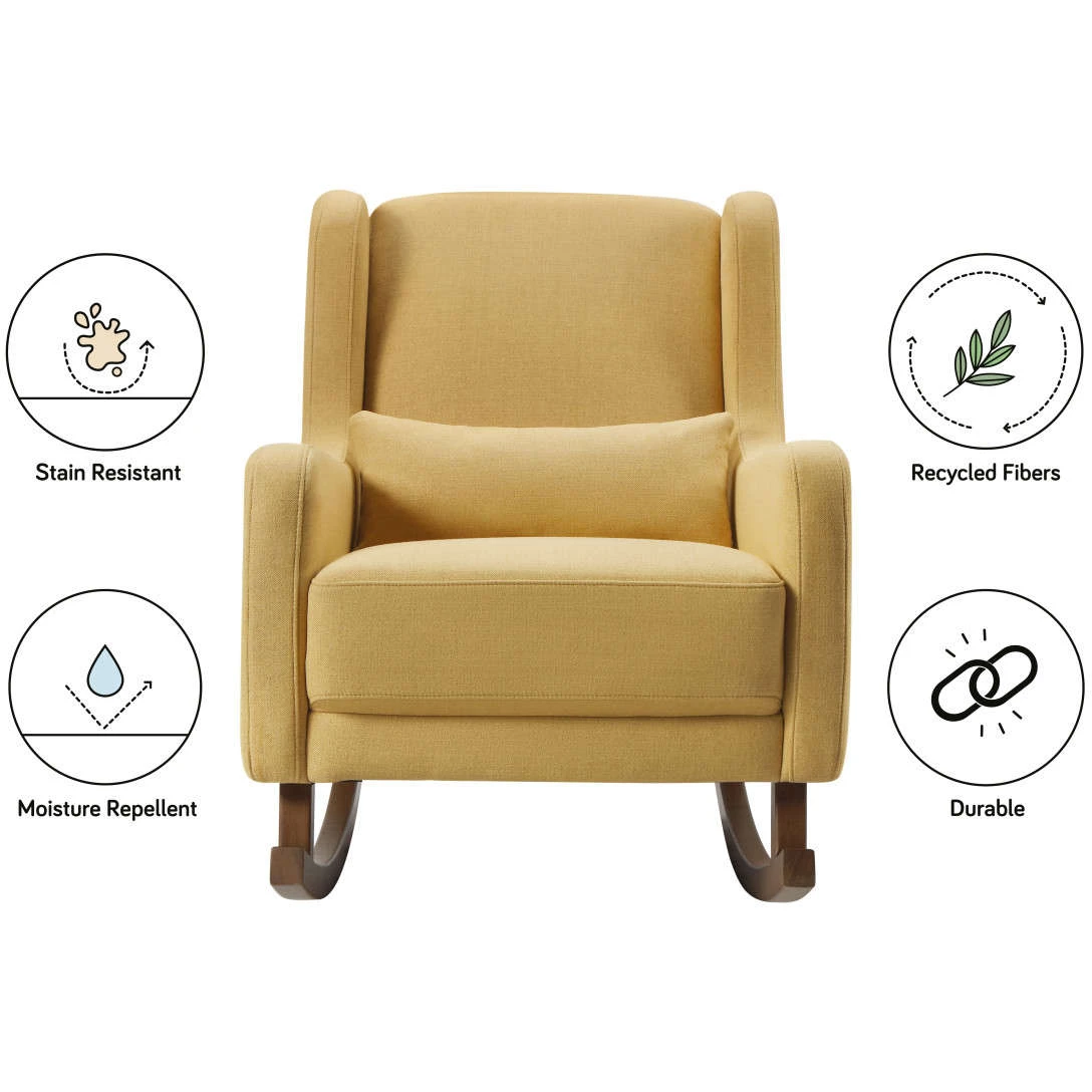 - MODERN WINGBACK STYLE: A modern twist on a mid-century wingback rocking chair with softly rounded edges, included lumbar cushion and upholstered by hand in soft eco-performance fabric. The Dijon shade will add a vibrant pop of color to your room while still working well with earthy, natural tones.