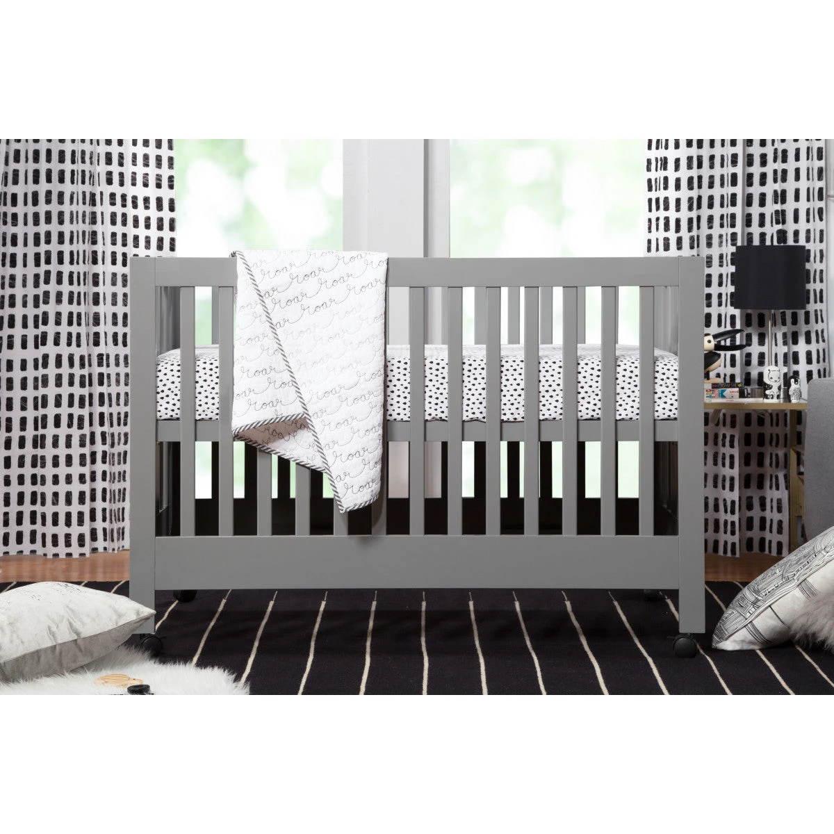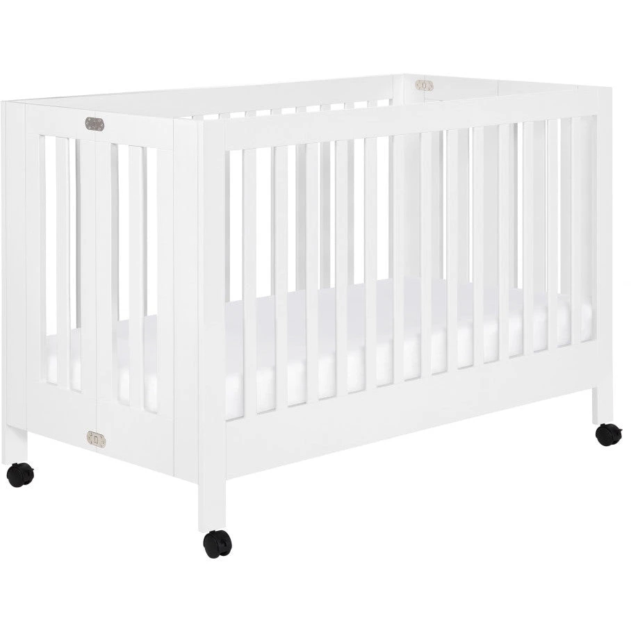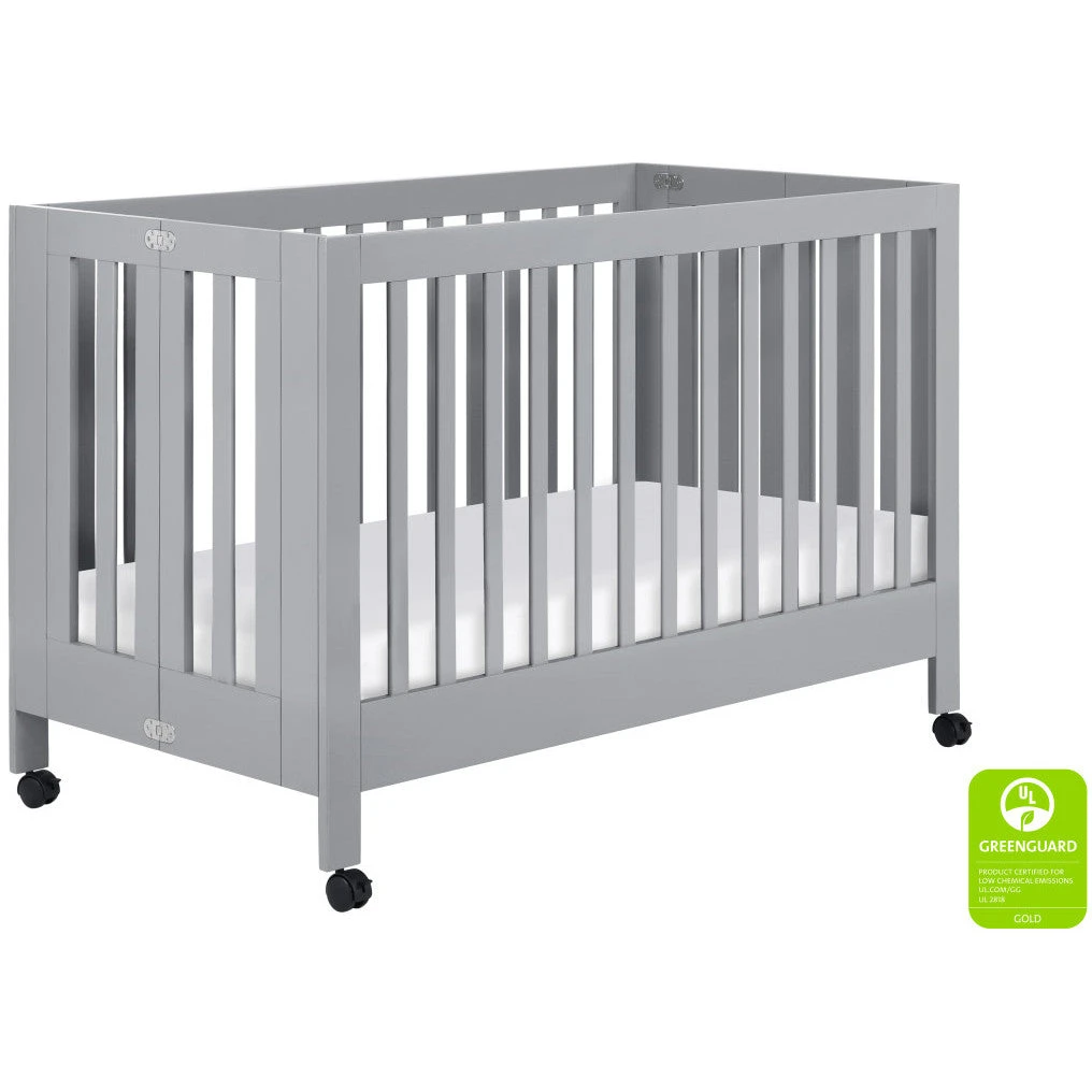 Watch your dream nursery unfold with the Maki Full-Size Folding Crib, a full-sized version of our popular Origami Mini. Its clean, geometric lines and foldable frame make this crib modern, portable and easy to store. Removable wheels and all-wood slat construction add lightweight mobility, perfect for secondary living spaces or a sleepover at Grandma’s. Convert to a toddler bed with the Maki Toddler Bed Conversion Kit (included).