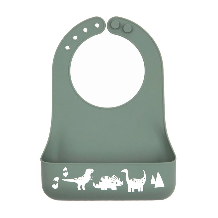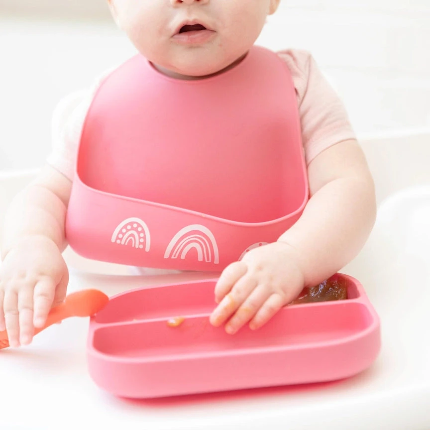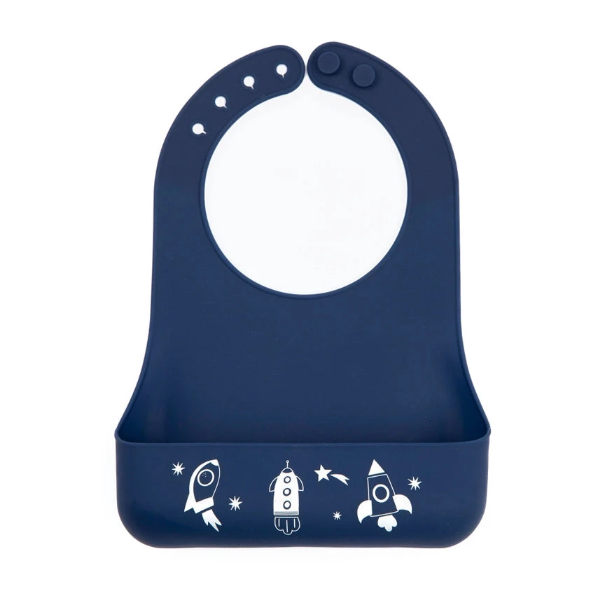 Introducing the first silicone beginner bib! We designed this bib to fit the littlest eaters. The bib has a narrow body which allows little arms to easily reach around and practice their eating skills. The catch pocket keeps your baby and surrounding area clean. * Size: 10.5″ x 6.5″ * Age: 0 months+