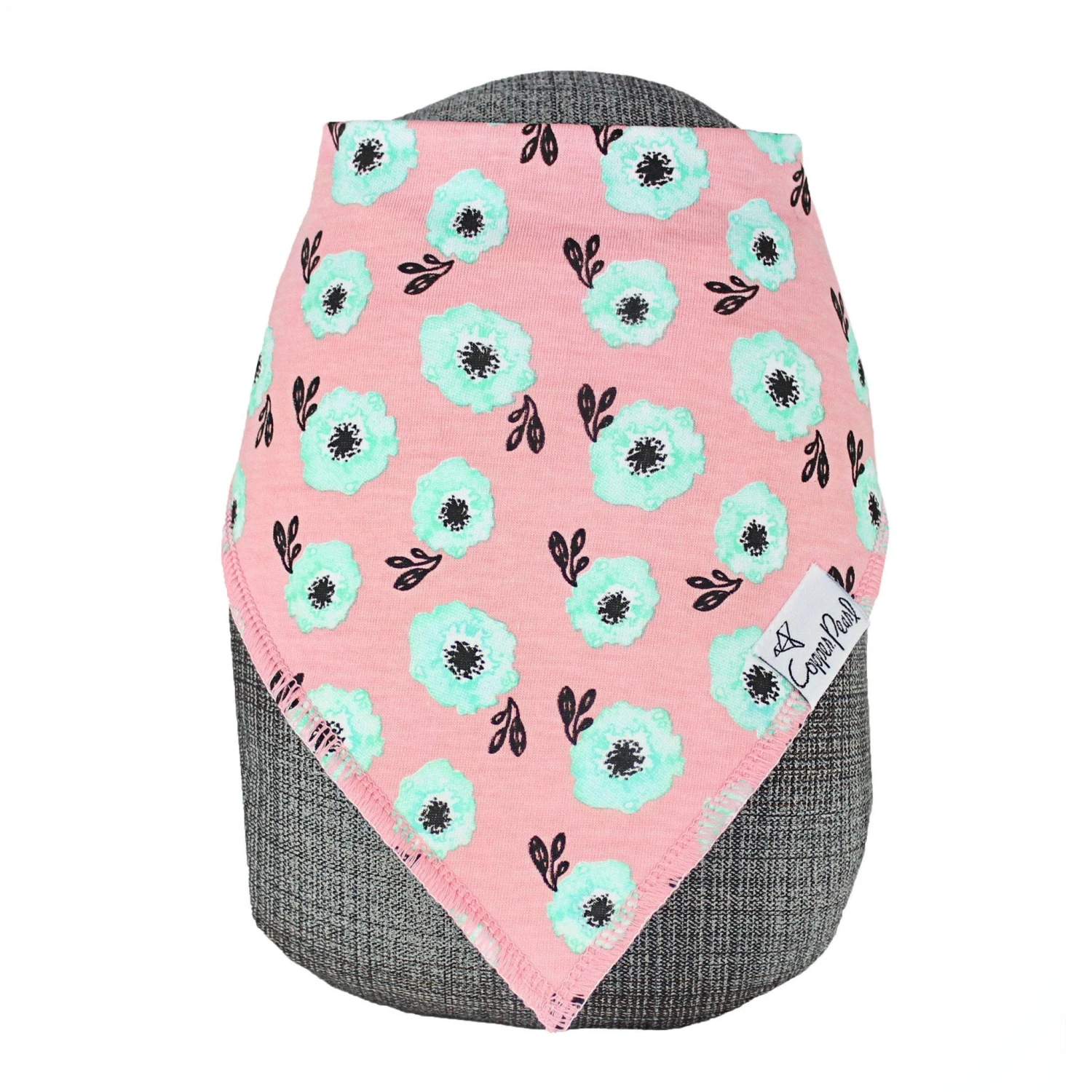 These stylish drool bibs are made of 100% absorbent cotton on the front and 100% polyester fleece on the back. The front of the baby bib is a stylish knit fabric and the back is a super soft fleece that keeps your baby completely dry even with the drooliest of babies. Great for teething babies!