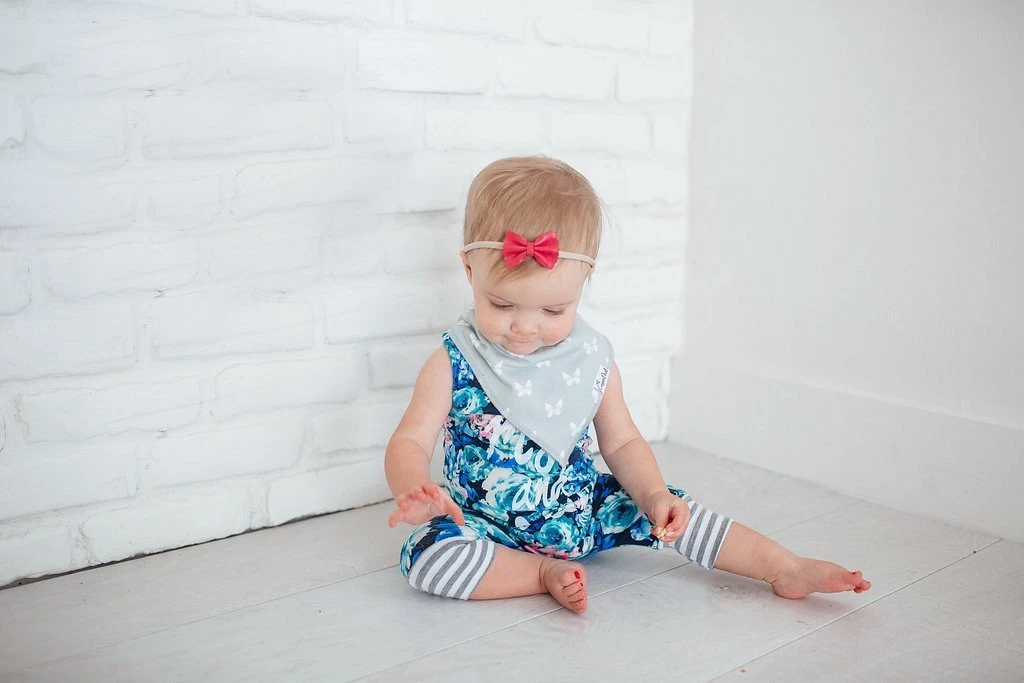 These stylish drool bibs are made of 100% absorbent cotton on the front and 100% polyester fleece on the back. The front of the baby bib is a stylish knit fabric and the back is a super soft fleece that keeps your baby completely dry even with the drooliest of babies. Great for teething babies!