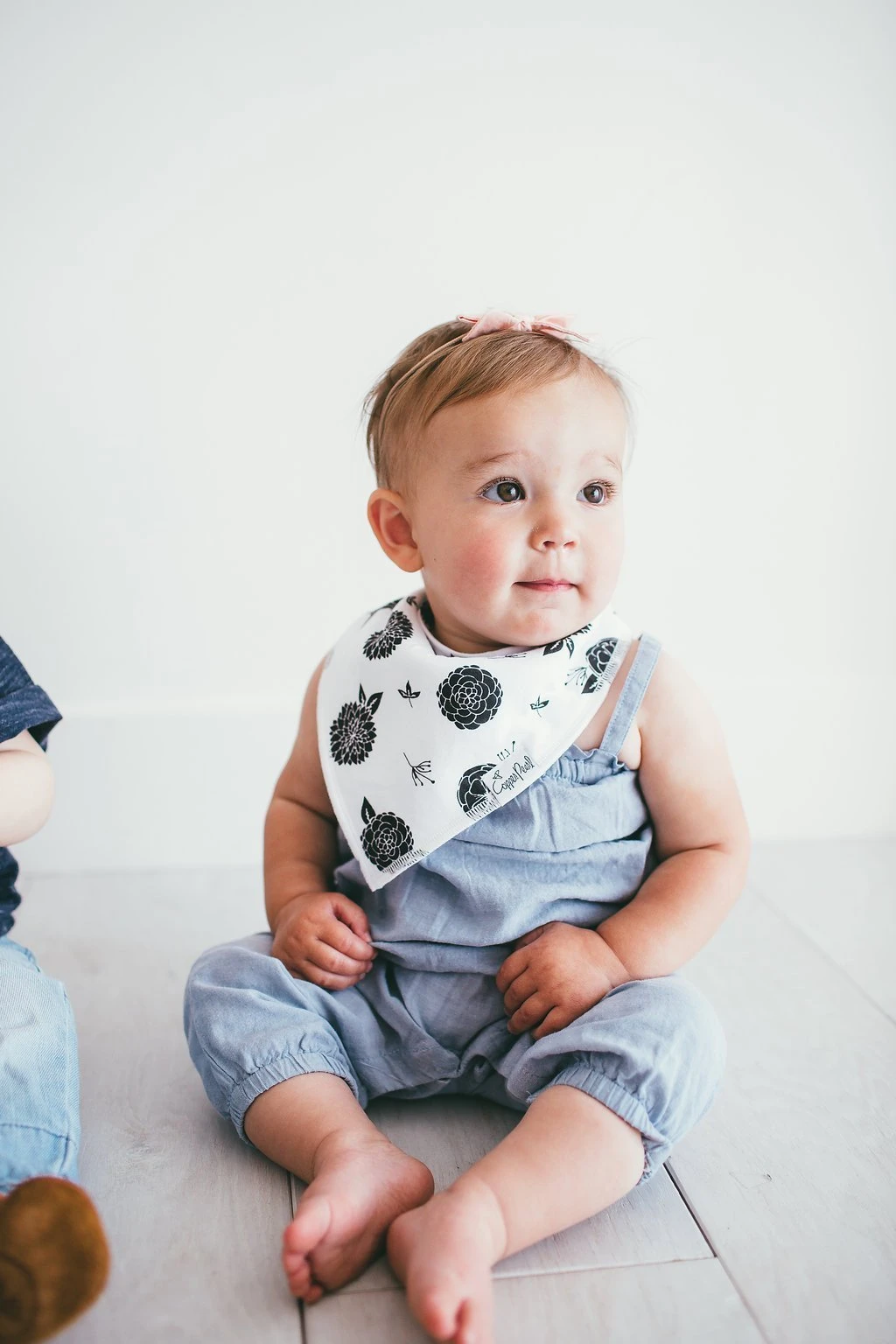 Each baby bandana bib comes with 2 nickel-free snaps that allow each bib to be adjustable in size to fit newborns and toddlers, with ages ranging from 3-26 months. The snaps are secure, making it difficult for infants and toddlers to unfasten but are easy for parents to snap on and off.
