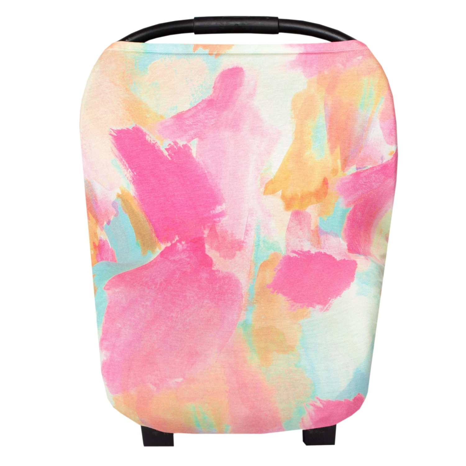 - Stretchy fabric fits most all car seats, shopping carts, high chairs and nursing mothers. It can also be a trendy infinity scarf! Our multi color brush stroke fabric is trendy and perfect for baby girls
