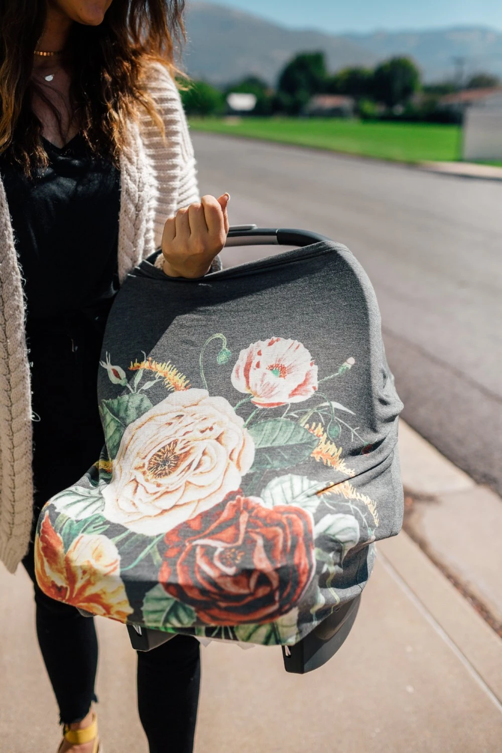 Stretchy fabric fits most all car seats, shopping carts, high chairs and nursing mothers. It can also be a trendy infinity scarf! Our multi color floral fabric is trendy and perfect for baby girls