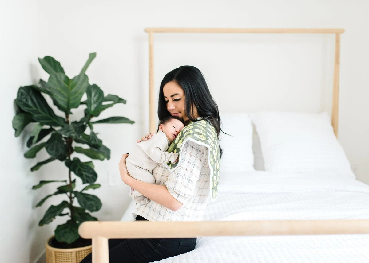 Our burp cloths are designed with baby’s comfort in mind. That’s why we created them with 100% ultra-soft cotton layers on the front (patterned) and back (plain white). You can feel confident that baby will feel cozy against your shoulder while burping.