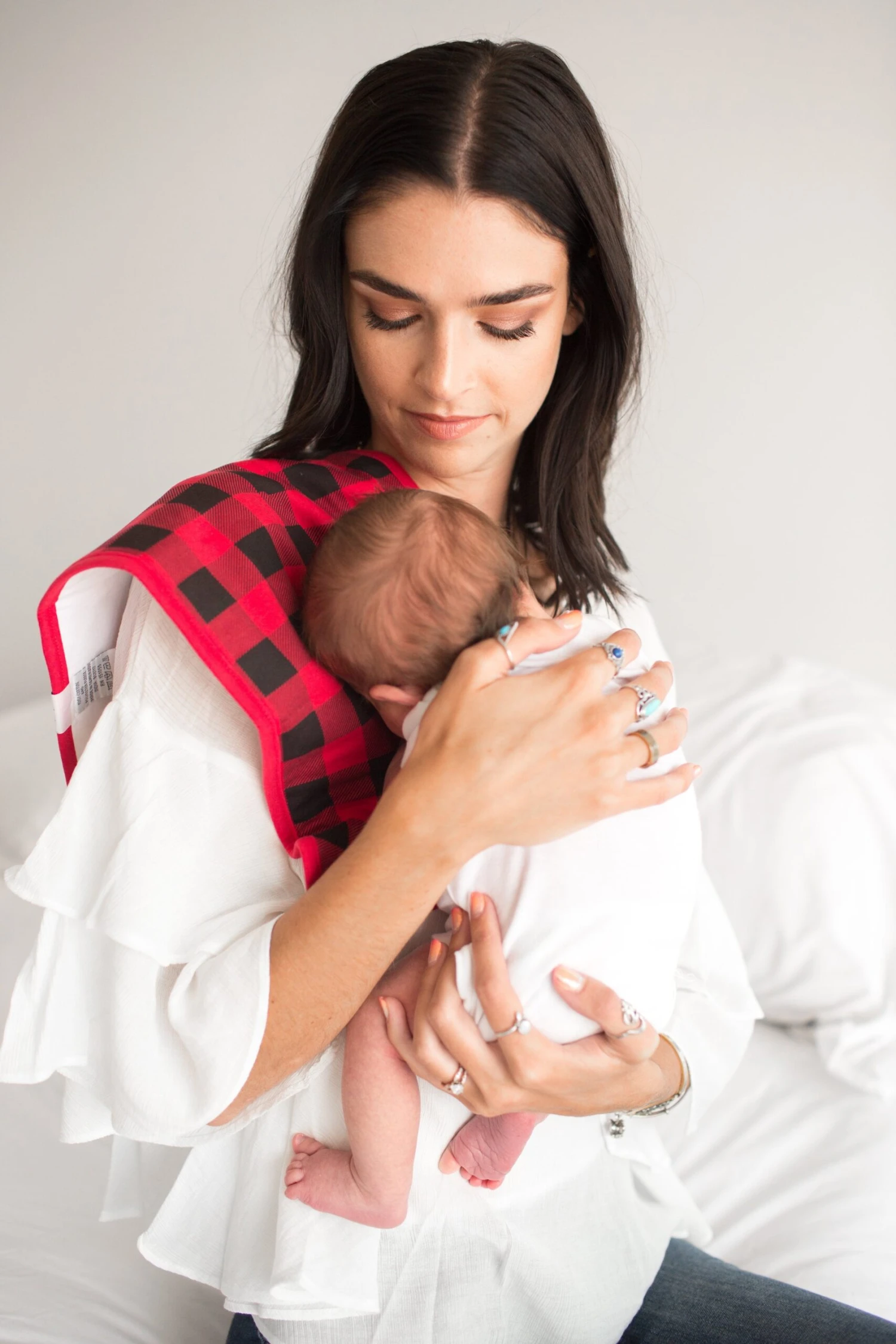 - Our burp cloths are designed with baby’s comfort in mind. That’s why we created them with 100% ultra-soft cotton layers on the front (patterned) and back (plain white). You can feel confident that baby will feel cozy against your shoulder while burping.