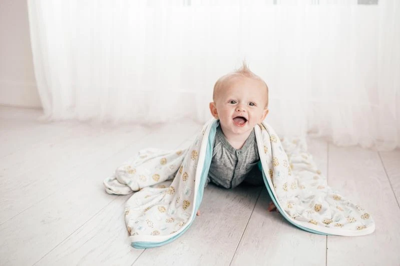 These three-layer quilts are designed with baby’s comfort in mind. That’s why we created them with ultra-soft, breathable fabric with just the right hint of stretch. You can feel confident that baby will feel cozy and comfortable snuggled in this special blanket. These quilts are made from the same ultra soft and stretchy material as our original knit swaddle blankets.