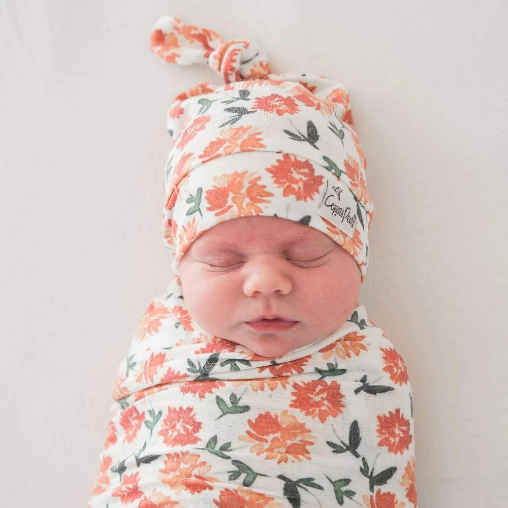 Copper Pearl’s top knot hats are designed to keep tiny heads warm and cozy. Created with the same premium softness and chic patterns as our swaddle blankets, these stylish caps are a necessary accessory for any newborn babe.