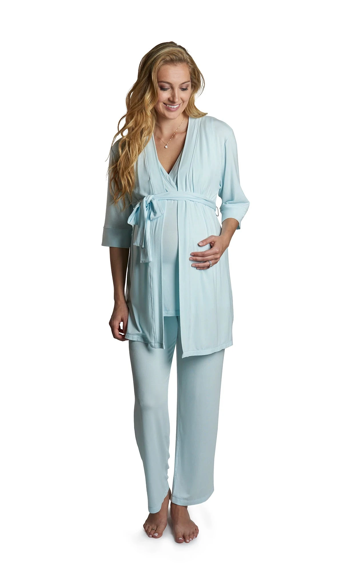 - Set includes maternity/nursing top, pant, robe, newborn gown and hat(0-3M).