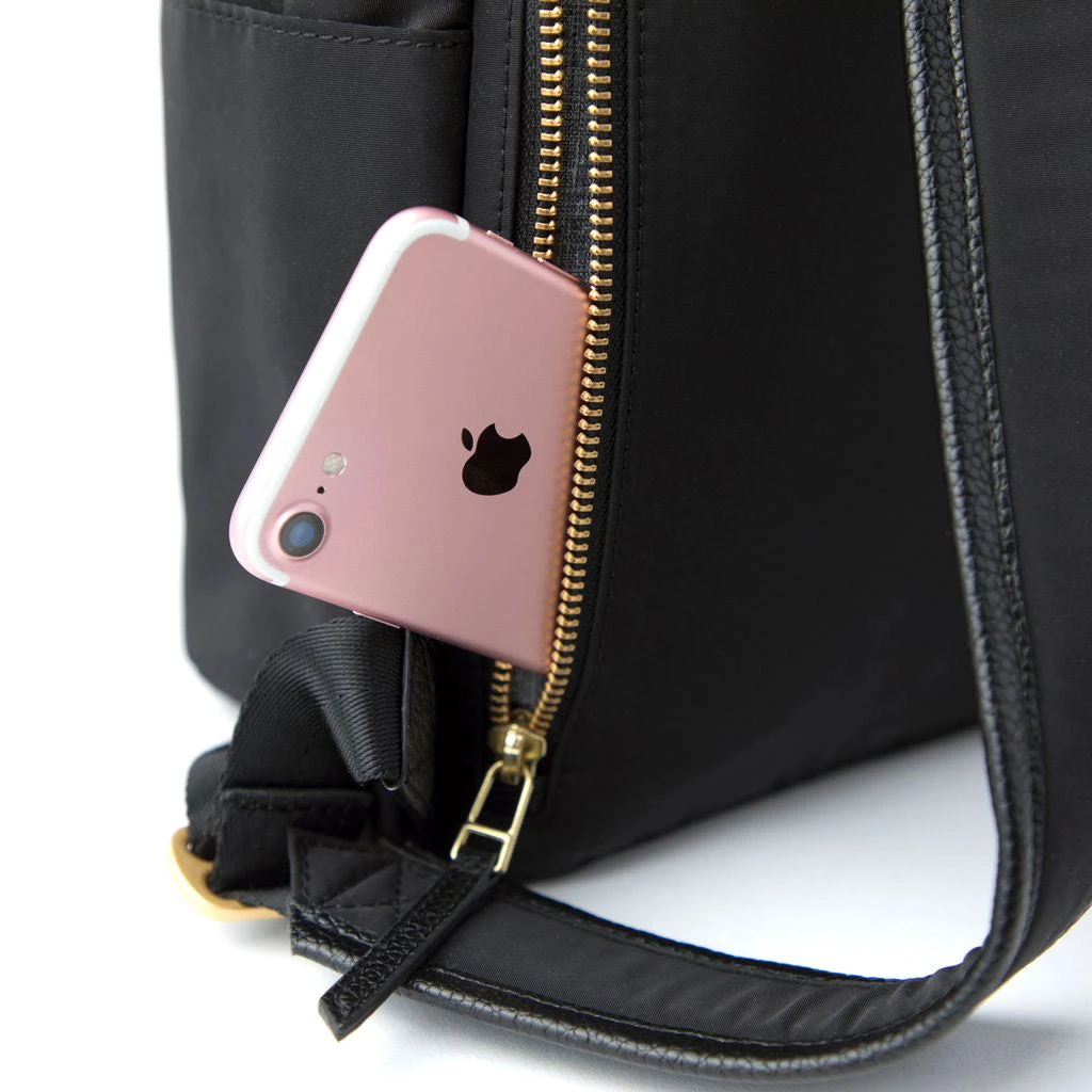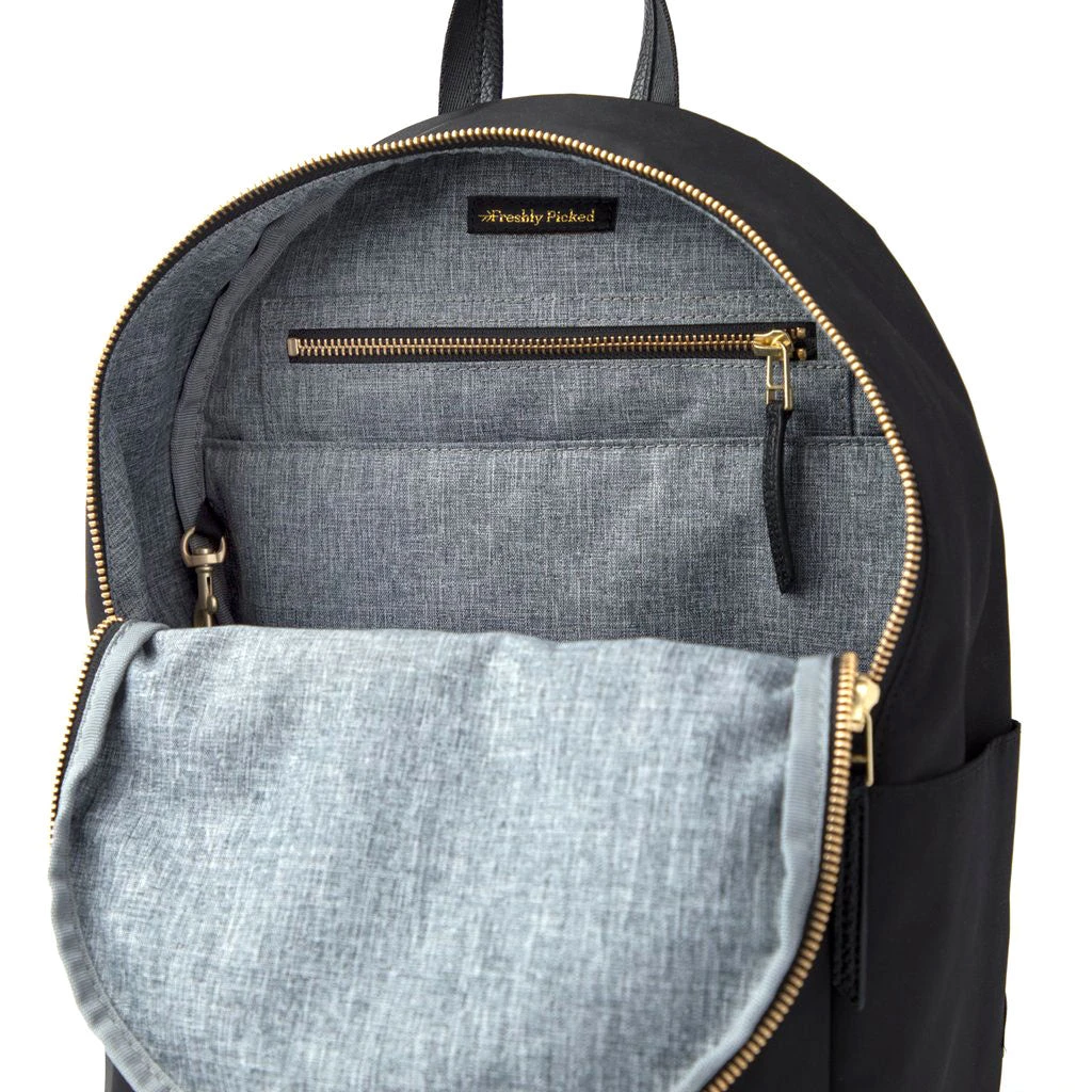 If you’re into keeping your life stylish, and functional, then this diaper bag is for Y-O-U. Made from our super lightweight, durable, and water-resistant nylon fabric, The City Pack comes complete with plenty of storage space, padded shoulder straps with vegan leather details, and a double zipper main compartment. Plus, metal hardware and a plated FP logo on the front are set off beautifully by the Ebony colored nylon that totally wipes clean inside and out! What’s not to love?