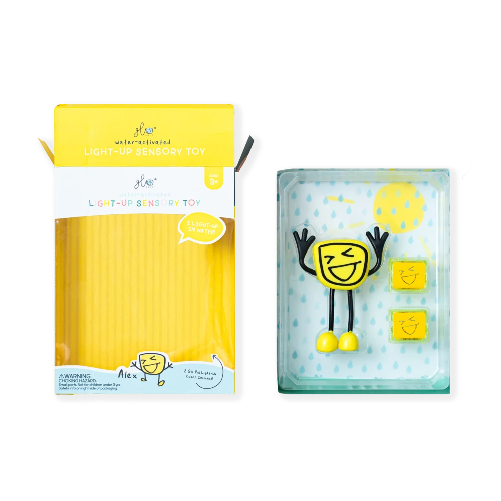 Insert your Glo Pals Light-Up Cube into the back of each Pal, drop it in the water, and watch it light up! Featuring bendable arms and colorful personalities, each Pal proudly illustrates the uniqueness in every child! Alex comes with two Glo Pals Light-Up Cubes included in the box!