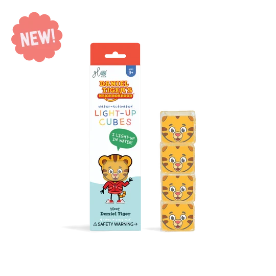 Welcome to the Neighborhood of Make-Believe! Our new Pal Daniel Tiger is sure to bring lots of Grr-ific fun your way. Simply drop your Daniel Tiger cubes into water and watch him light-up playtime!