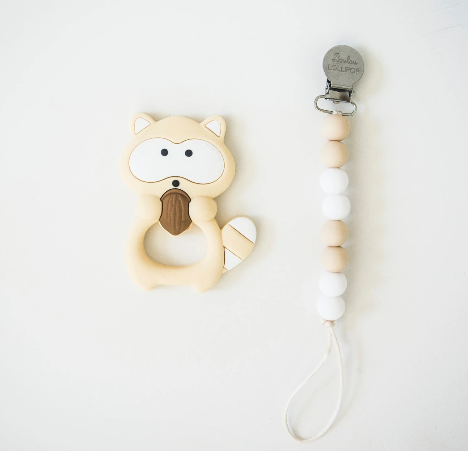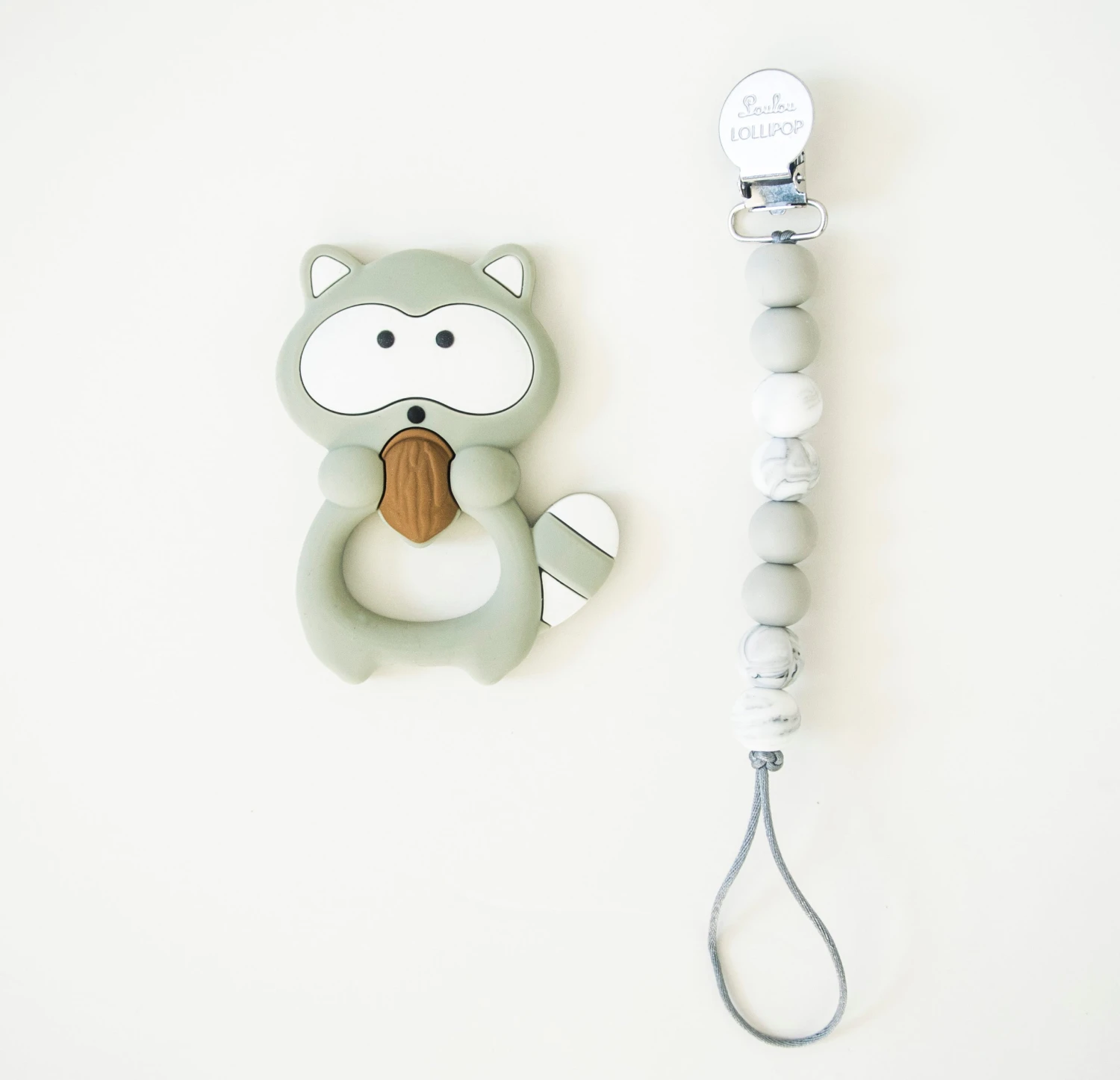 Loulou Lollipop Racoon silicone baby teether is perfect for the little hands to hold and gum on. Textured on both sides, it helps to ease teething pain.