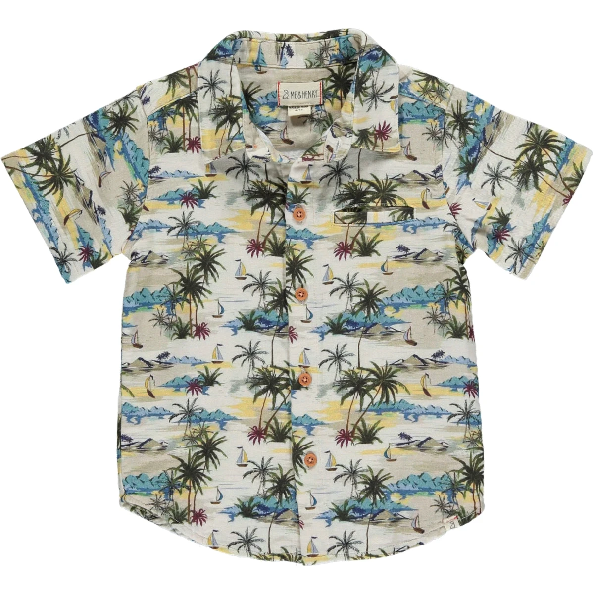 Me & Henry Maui Cream Hawaiian Print Woven Shirt