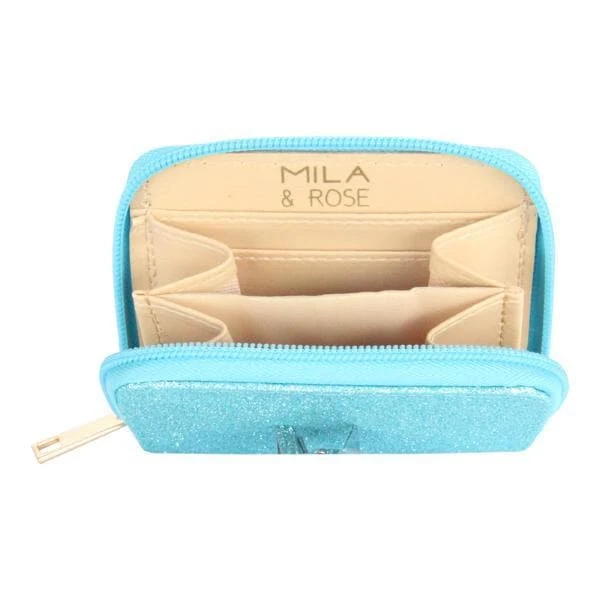 This aqua glitter wallet is the perfect accessory for the Mila & Rose purses. Zip closure and plenty of room for coins, cash, and gift cards.