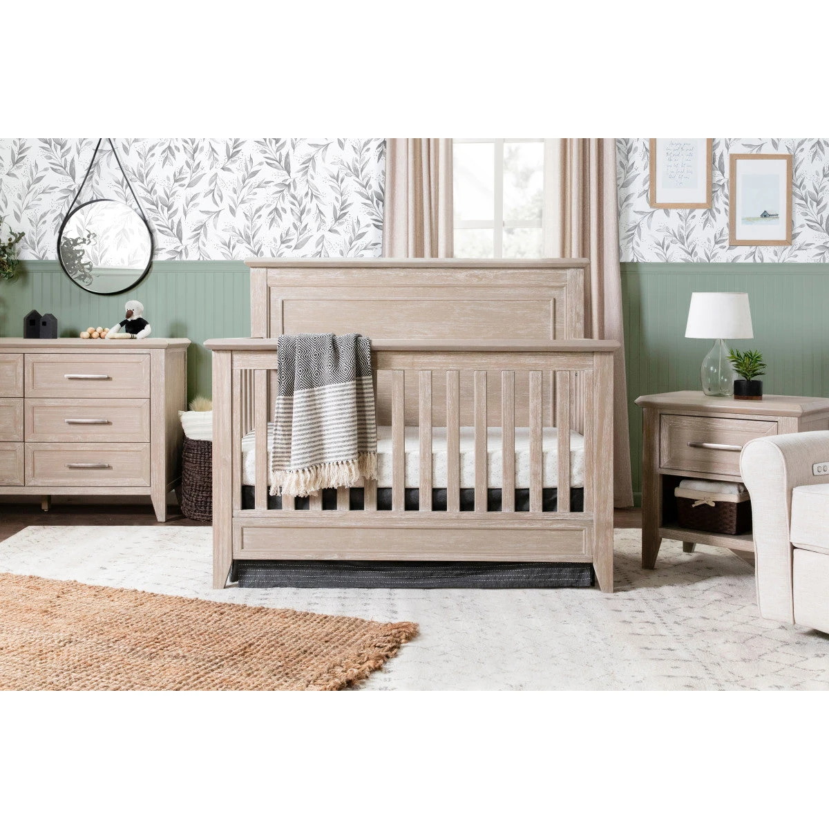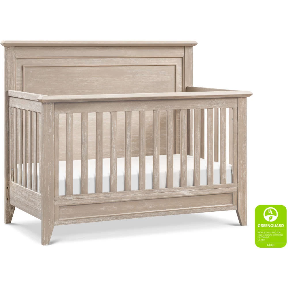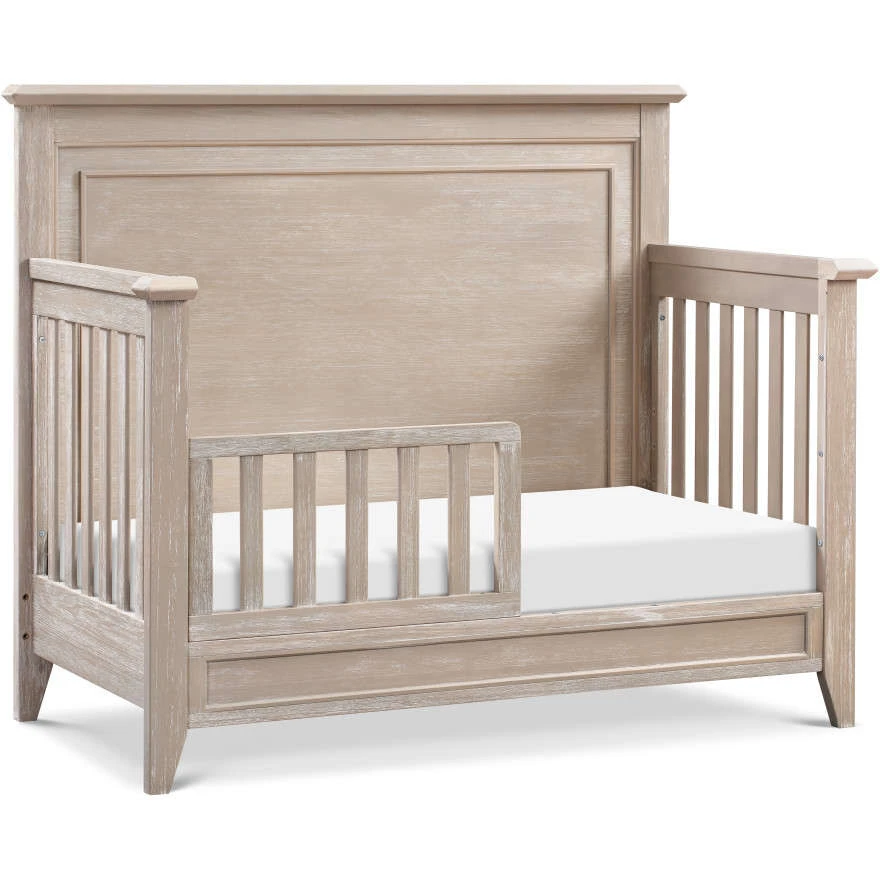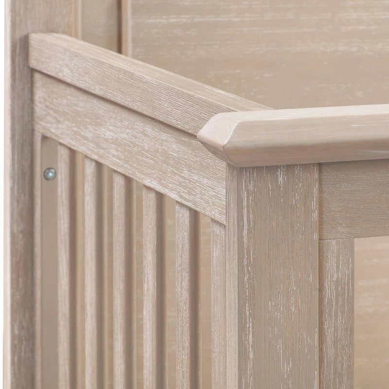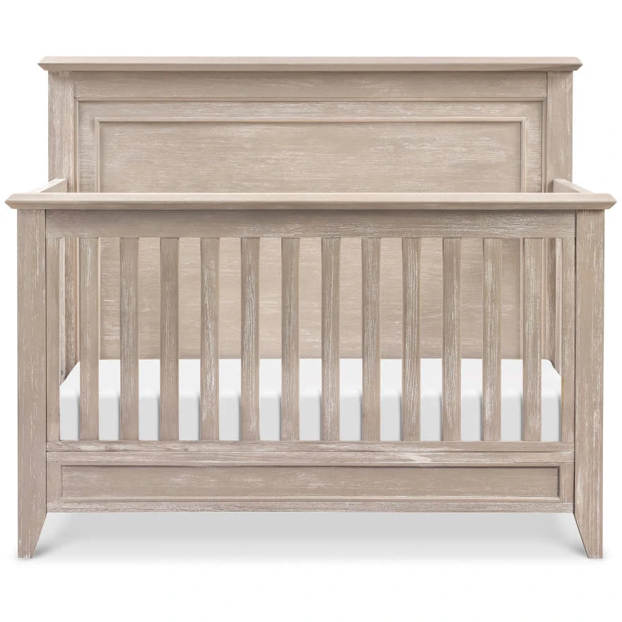 The Beckett Rustic 4-in-1 Convertible Flat Top Crib bridges the gap between traditional and modern design with its texturized wood finish, clean silhouette and thoughtful detailing. Featuring a raised back panel, elegant slats, simple tapered feet, and mitered cuts with contemporary 45 degree trimming, the Beckett Crib is a transitional piece that will grow with your family.