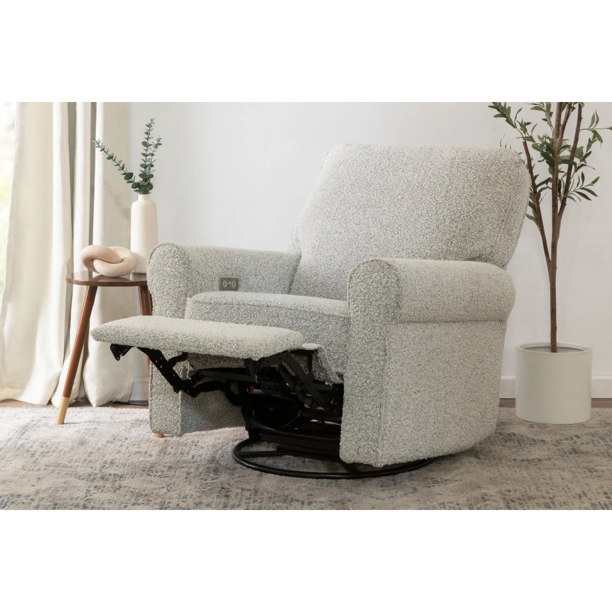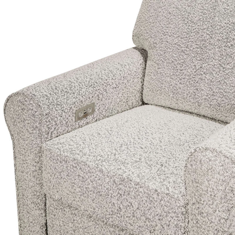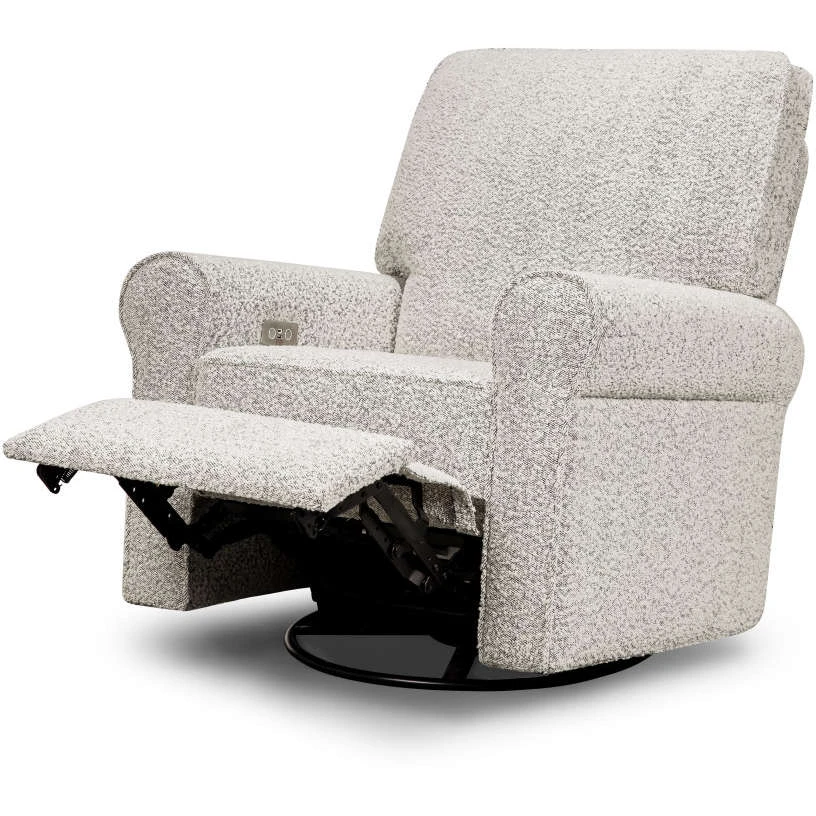 The Monroe Pillowback Power Recliner introduces traditional style with all the comforts of modern technology. With plush arm rests and a soft pillowback, it provides a restful retreat through day and night. With the Monroe’s electronic reclining mechanism, built-in USB port, and gentle swivel and gliding motions, you and your baby can relax with comfort and ease.