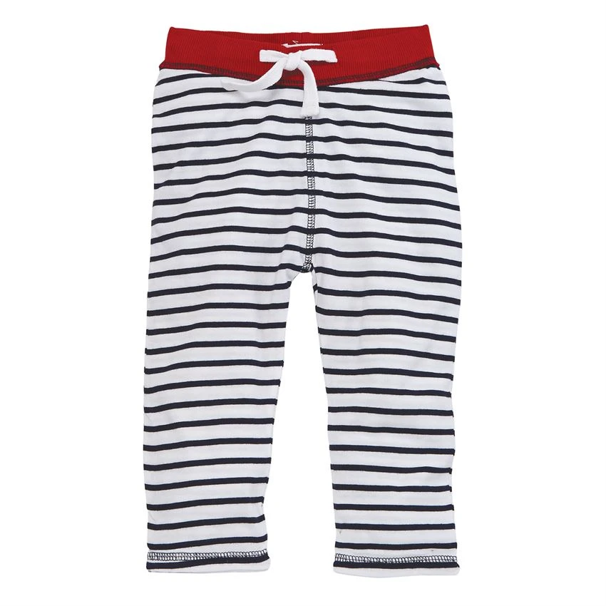 Easy pull-on pants perfect for mixing and matching with your favorite Mud Pie top or crawler, this pair of reversible jersey striped pants comes complete with a cotton rib waistband and twill tape ties.