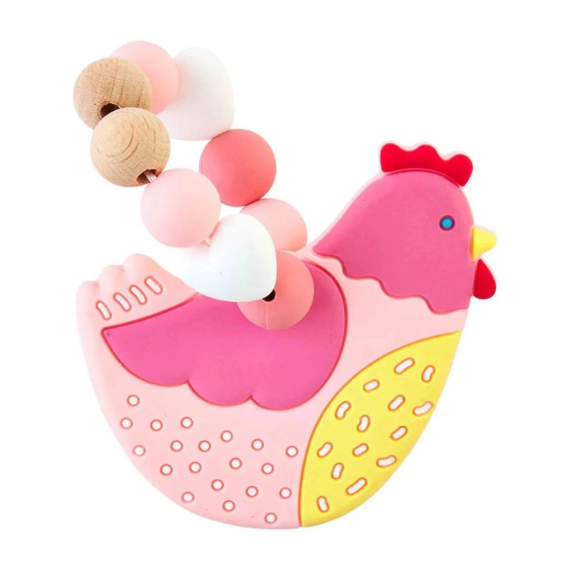 Silicone teether on silicone bauble ring. Dishwasher safe. Ages up to 18M.