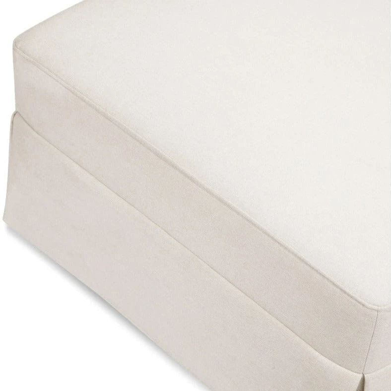 The Crawford Ottoman offers a modern take on traditional slipcover style and brings nursery comfort to a new level. It’s the perfect pair to our Crawford Glider, which features a plush pillowback design, added lumbar pillow, and wide seat. The glider and ottoman work together to create a back-and-forth gliding motion that helps you rock your baby to sleep with ease.