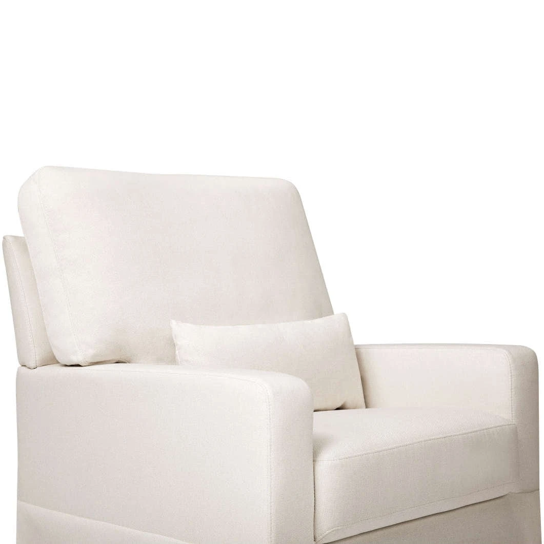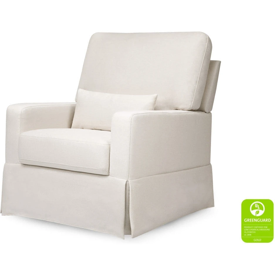The Crawford Glider offers a modern take on traditional slipcover style and brings nursery comfort to a new level with its plush pillowback design, added lumbar pillow, and wide seat. Its smooth, back-and-forth gliding motion helps you rock your baby to sleep with ease, while the convenient swivel creates an inviting repose for both you and your baby.