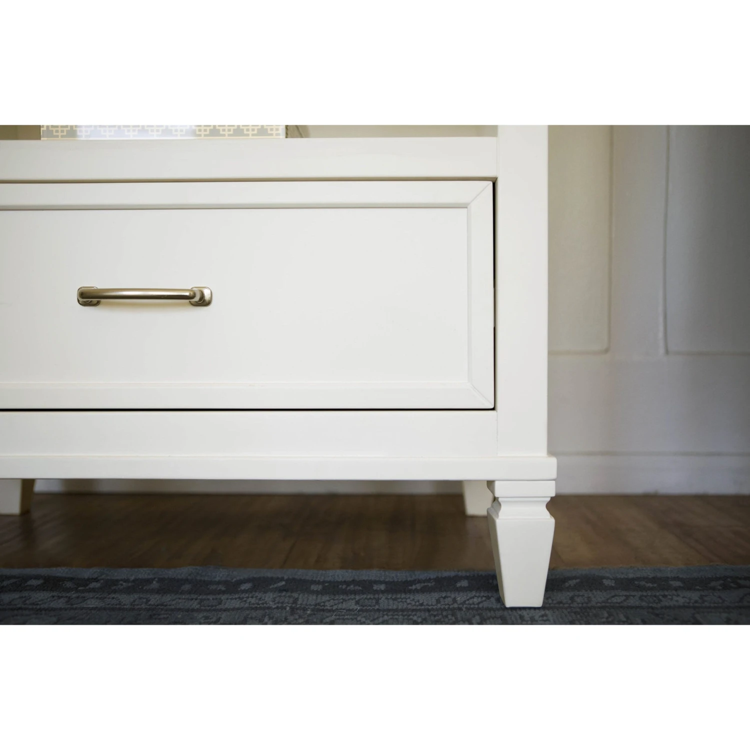 The Darlington Bookcase is a classic French country inspired storage solution for the home. The elegant bookcase features two open and adjustable shelves for displaying your child’s many books and treasures; customize and style it as baby grows into a toddler. With its classic raised molding, delicate feet detailing, and satin nickel accent drawer pull, the Darlington is an effortless piece to incorporate within the home.