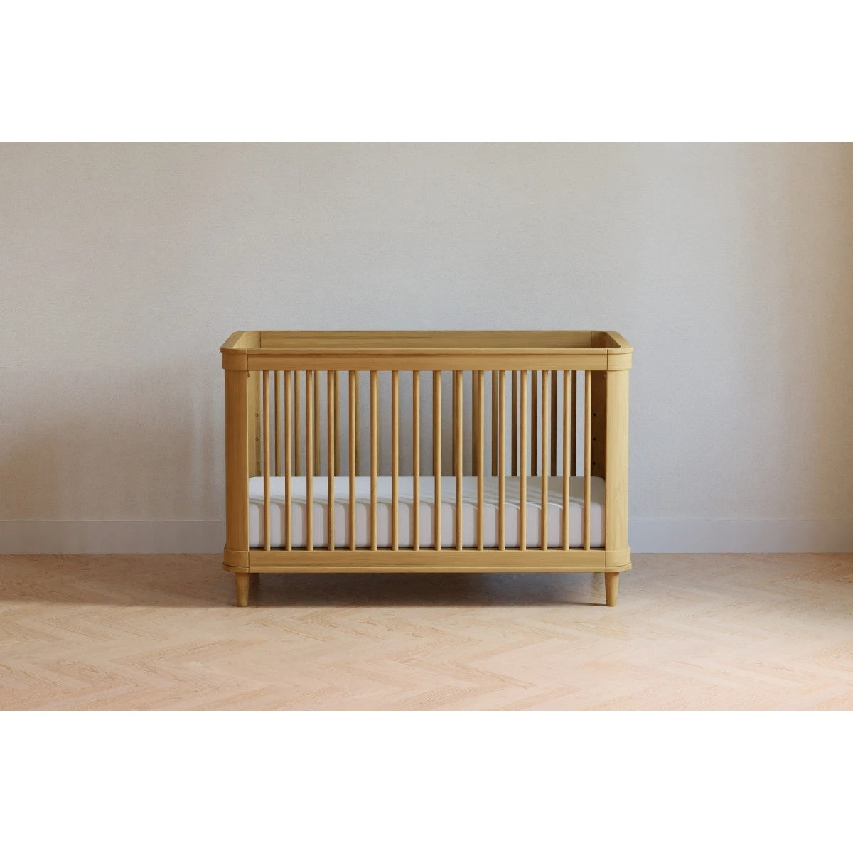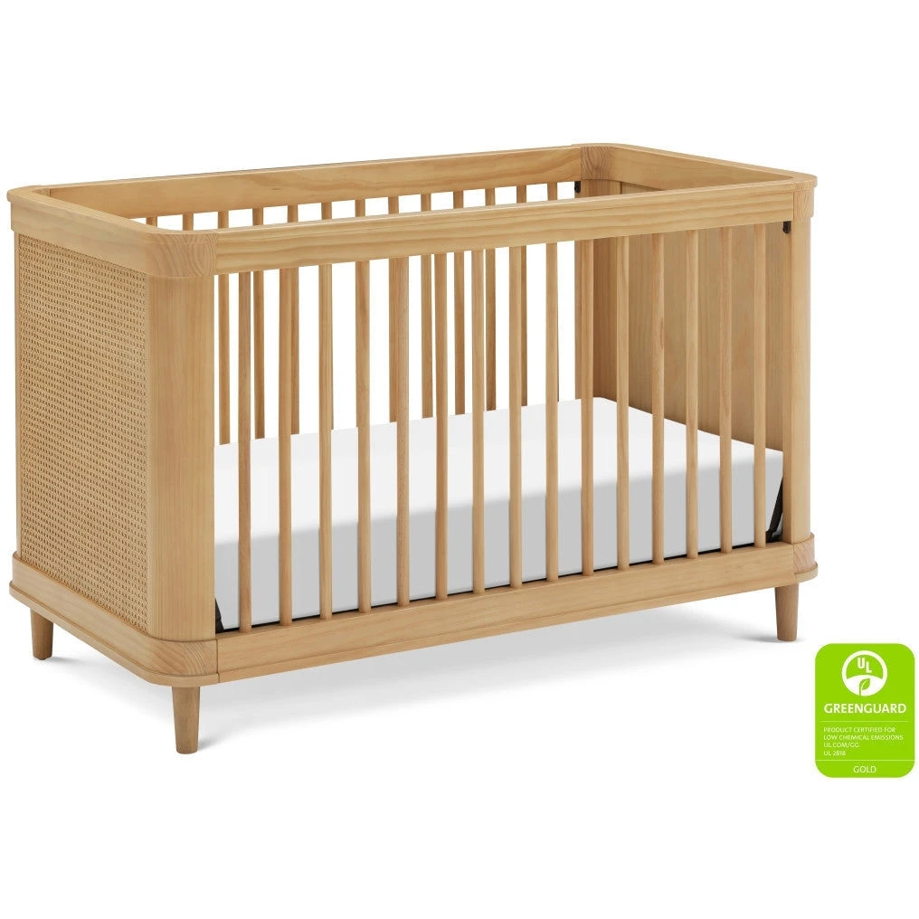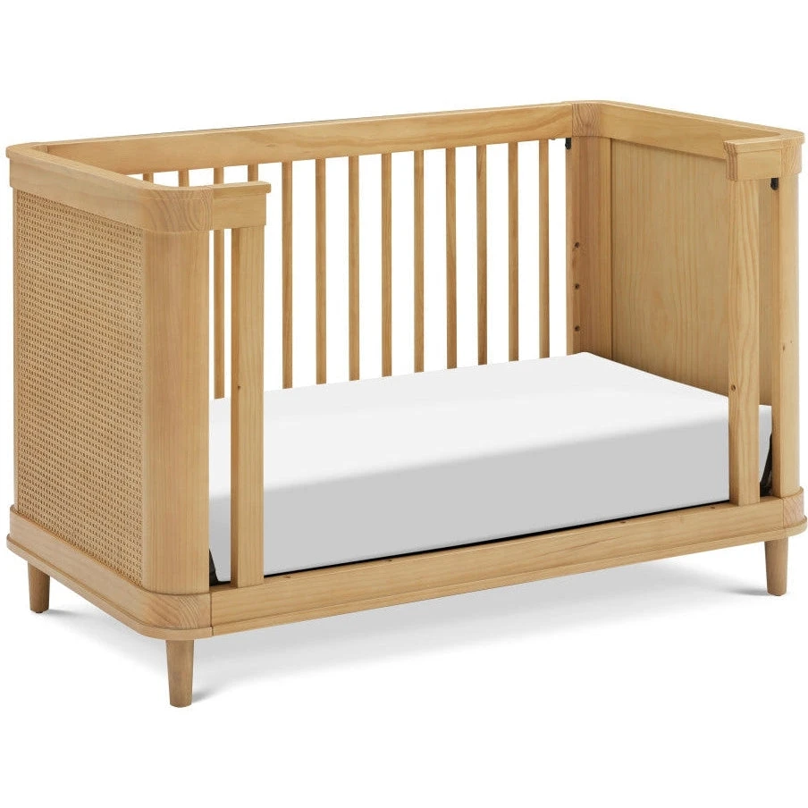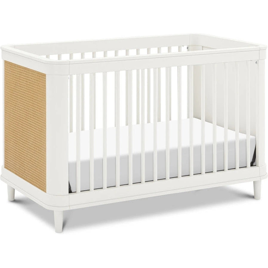Ease into contemporary style with the Marin 3-in-1 Convertible Crib. Featuring a gently curved silhouette with solid rounded cane side panels, the Marin is an effortlessly transitional piece for the home. Crib converts to a toddler bed and daybed, and fits any standard full-size crib mattress. convertible