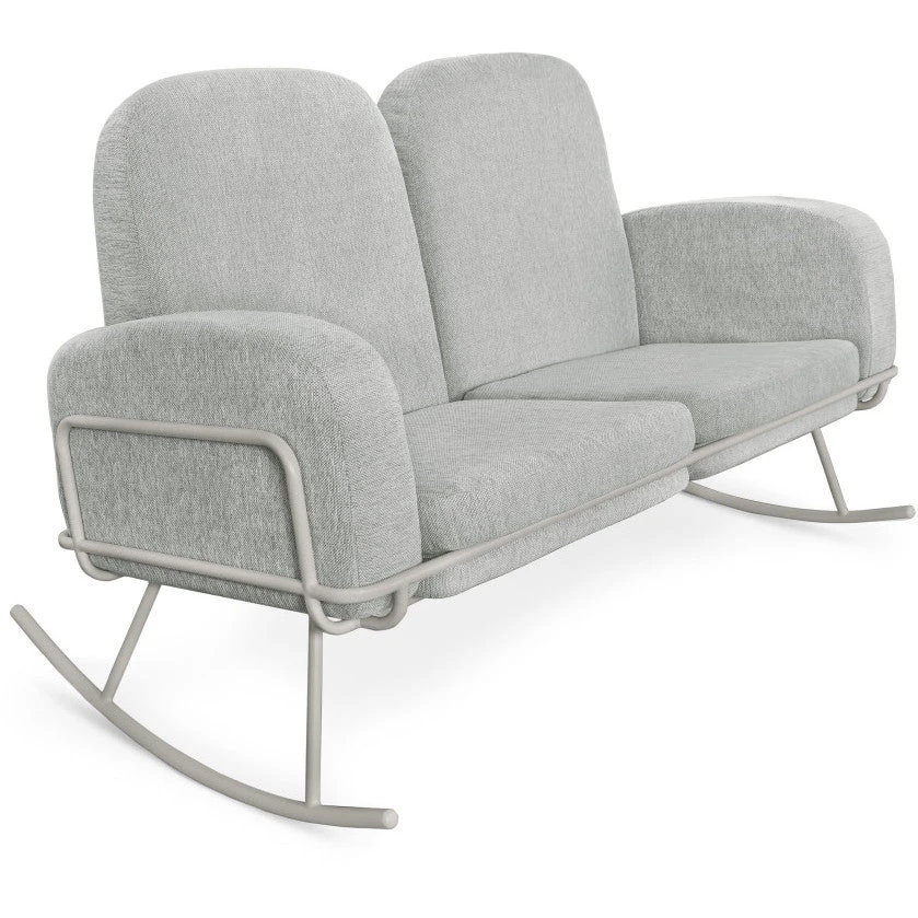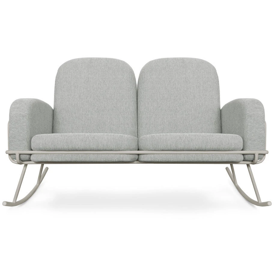 Interplay between soft, rounded wool cushions and molded powder-coated tubular steel framing balance each other, creating a streamlined finish. Ergonomic arm height supports comfortable feeding to the gentle rocking cadence of the rocker. An easy drop and tie conversion process transforms the Ami to a double seat rocker.