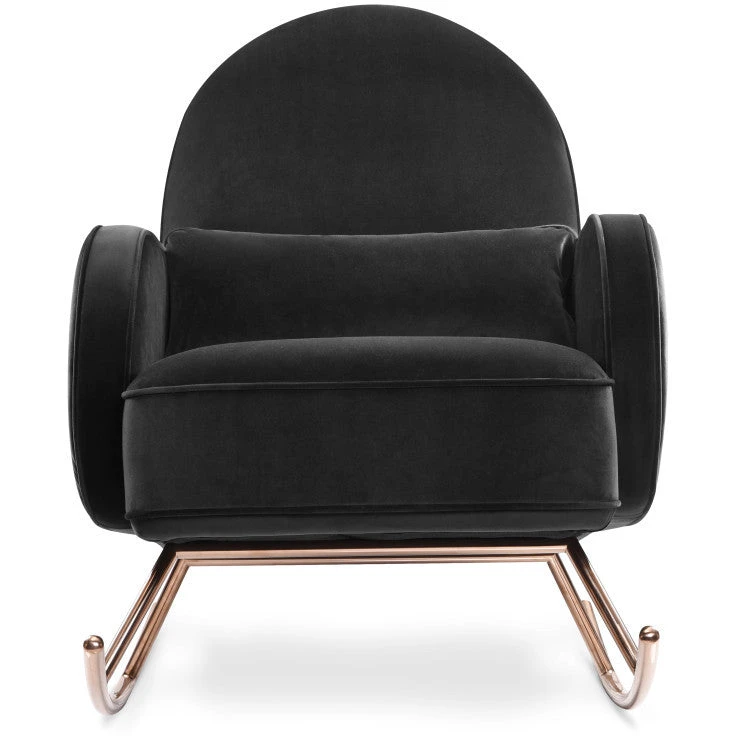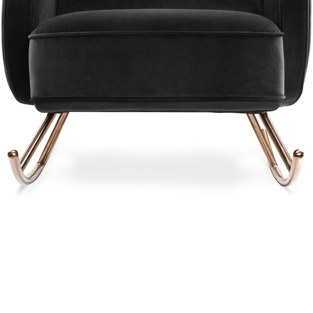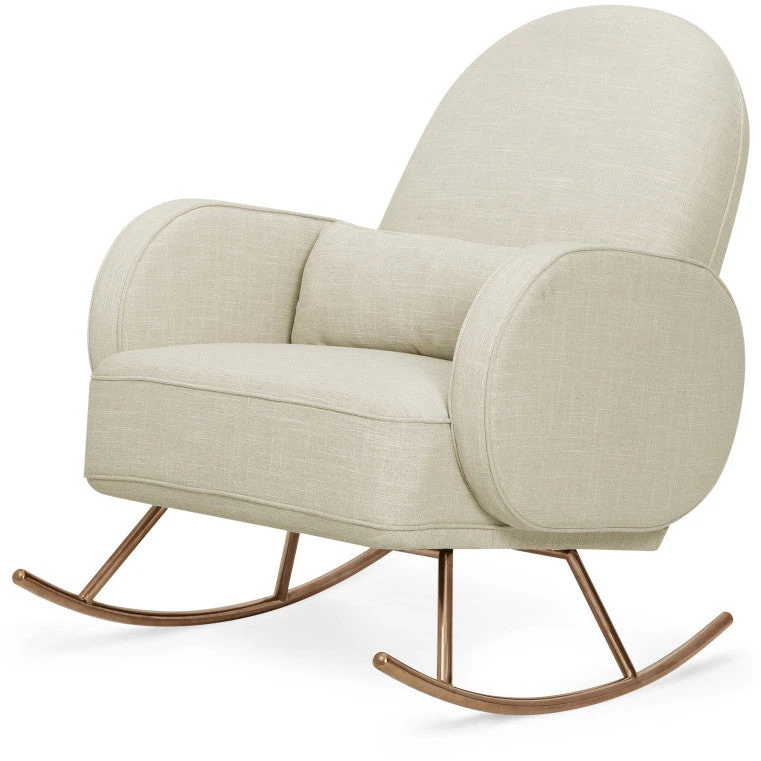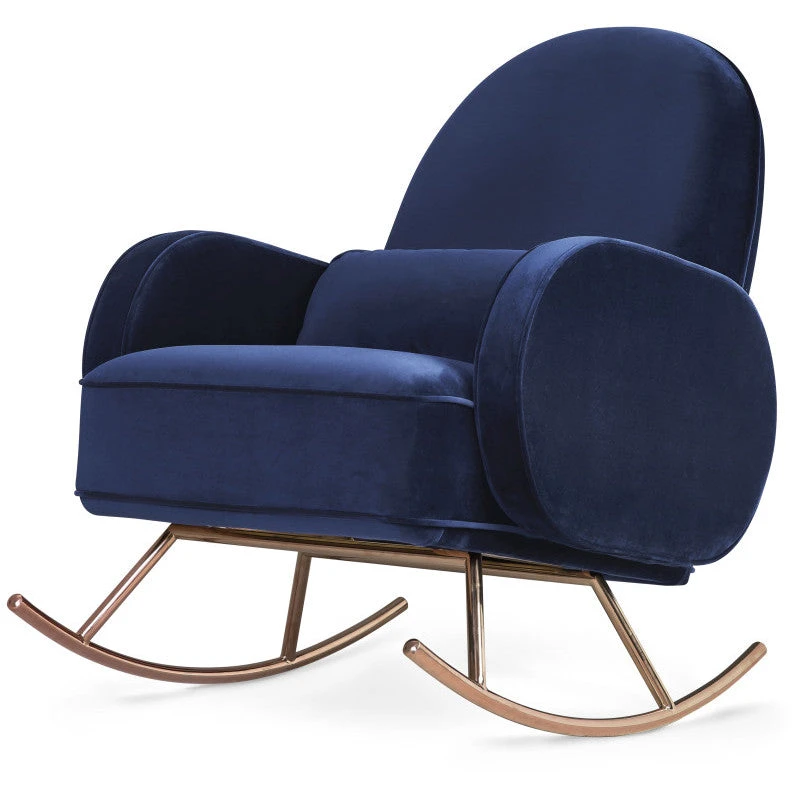 A harmonious balance of rounded volumes rests atop tubular brass runners. The Compass rocker is at once a study in geometry and a place for luxurious repose as its cushions are plush, yet supportive and its metal base ensures a free-flowing, rocking cadence.