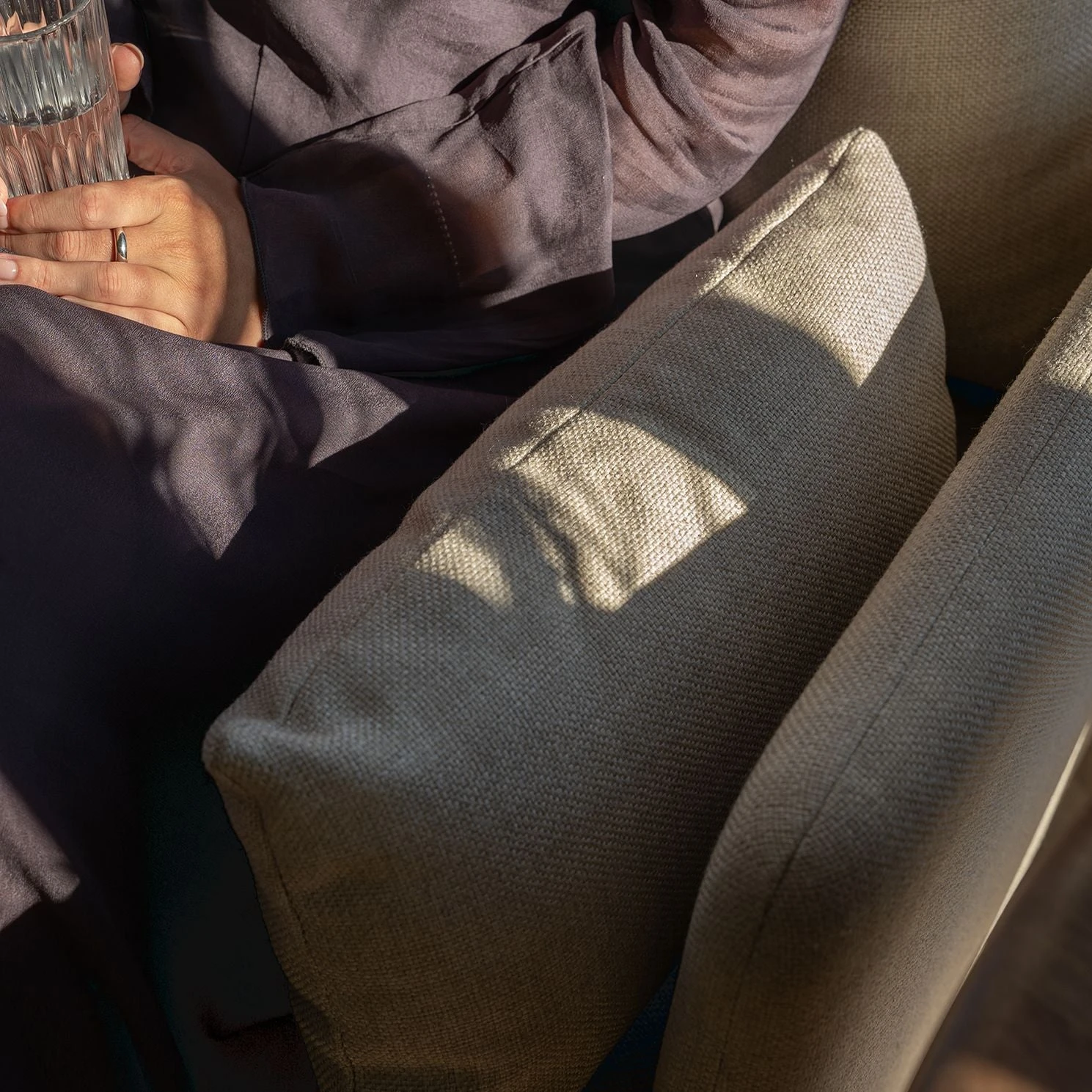 We work really hard to make sure your cushions are made from the best possible material and don’t slide everywhere. Our Milo cushions are filled with a non-absorbent, mildew-resistant polyester fiber that is lofty, lightweight, and soft. Thus giving you true comfort you can sink into along with peace of mind. We recommend flipping cushions regularly to maintain even wear on both sides of your cushions.