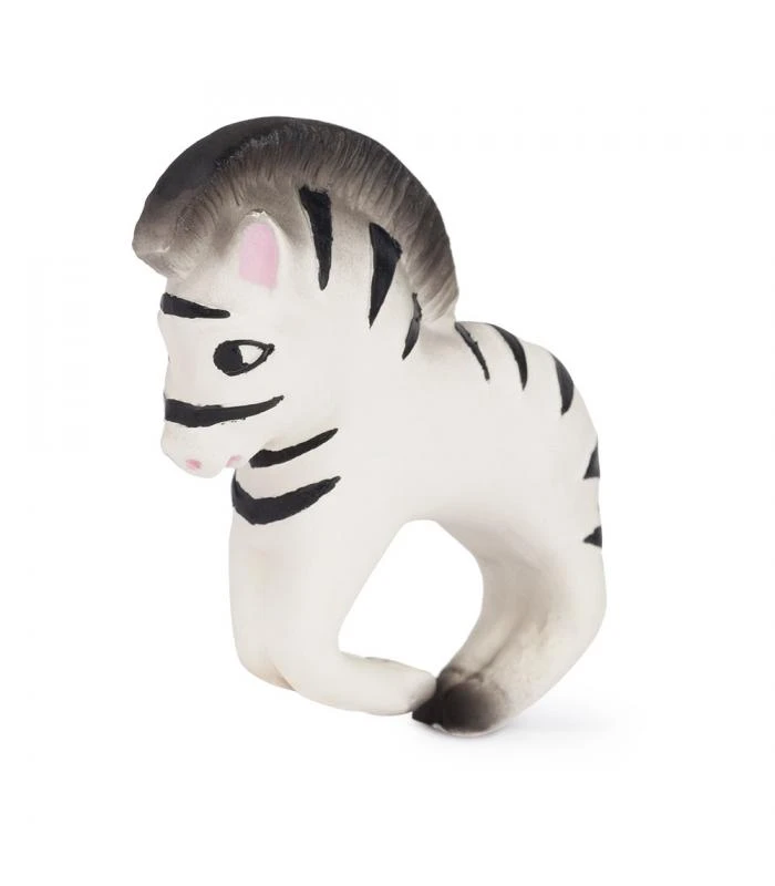 ZOE THE ZEBRA is a chewable animal-shaped bracelet for sensory play, teething and bath time. Little gums love the texture of natural rubber. Soft and easy to grip and place around the wrist. ZOE THE ZEBRA is handcrafted with black & white camouflage stripes to play in the African savannah with your little one. Your baby can wear this bracelet and chew on it all day long!