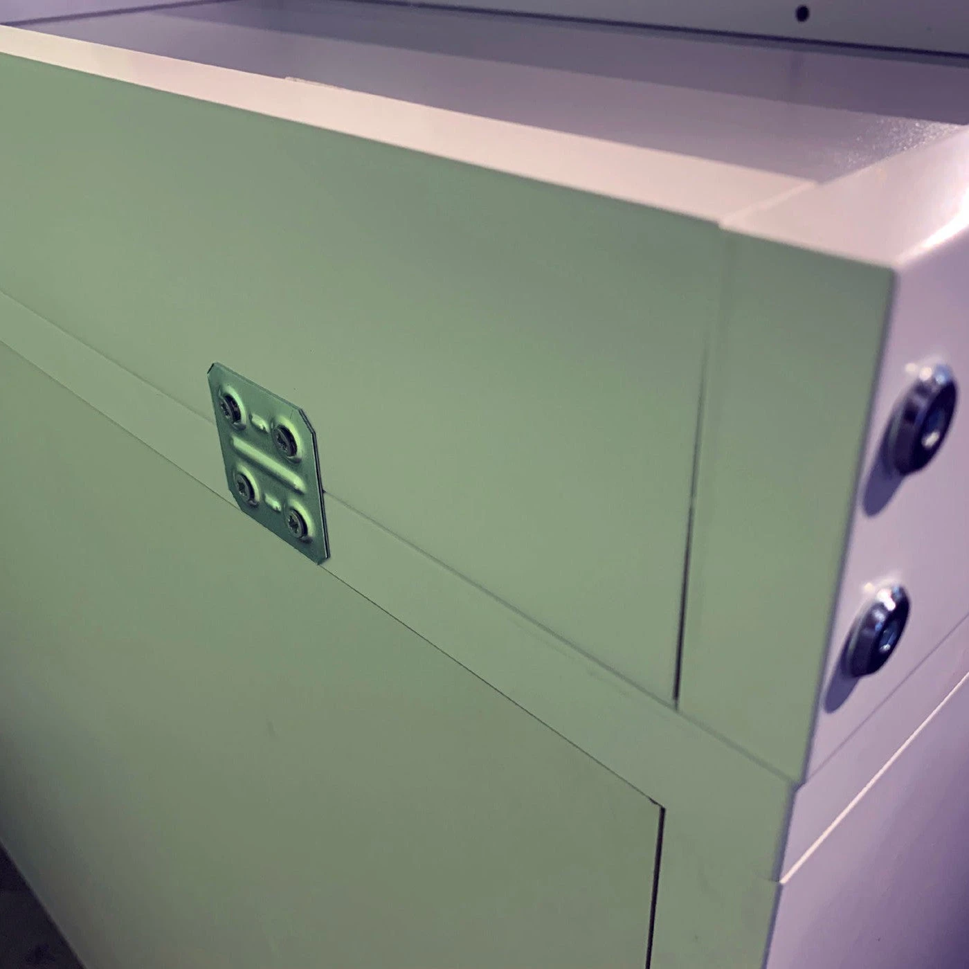It is designed to fit the Caravaggio dresser and features a bottom, to protect the top of the dresser as well as a divider. To maximize safety, it must be fixed to the dresser with the specially designed hardware provided with the product.