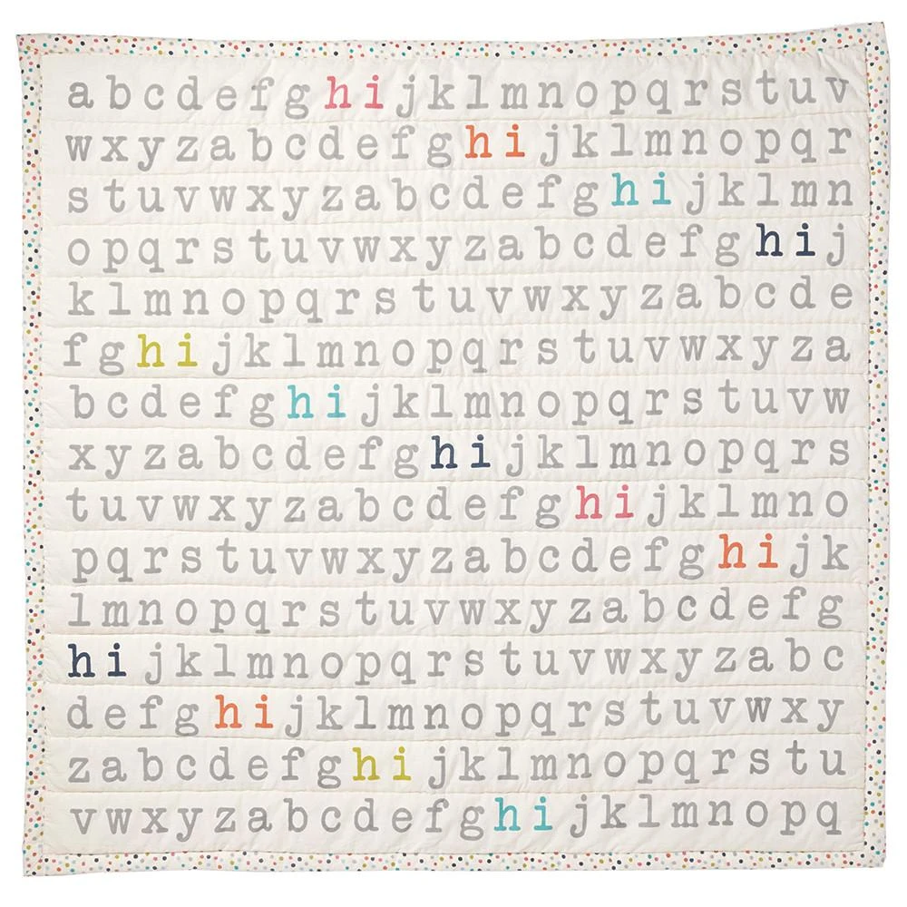 Baby’s first word lives in the alphabet, and in pops of color on Pthis ‘hi’ blanket with a bright ric rac reverse. This Petit Pehr ‘Hi’ Blanket is made from 100% quilted cotton and is the perfect playmate or stroller blanket.