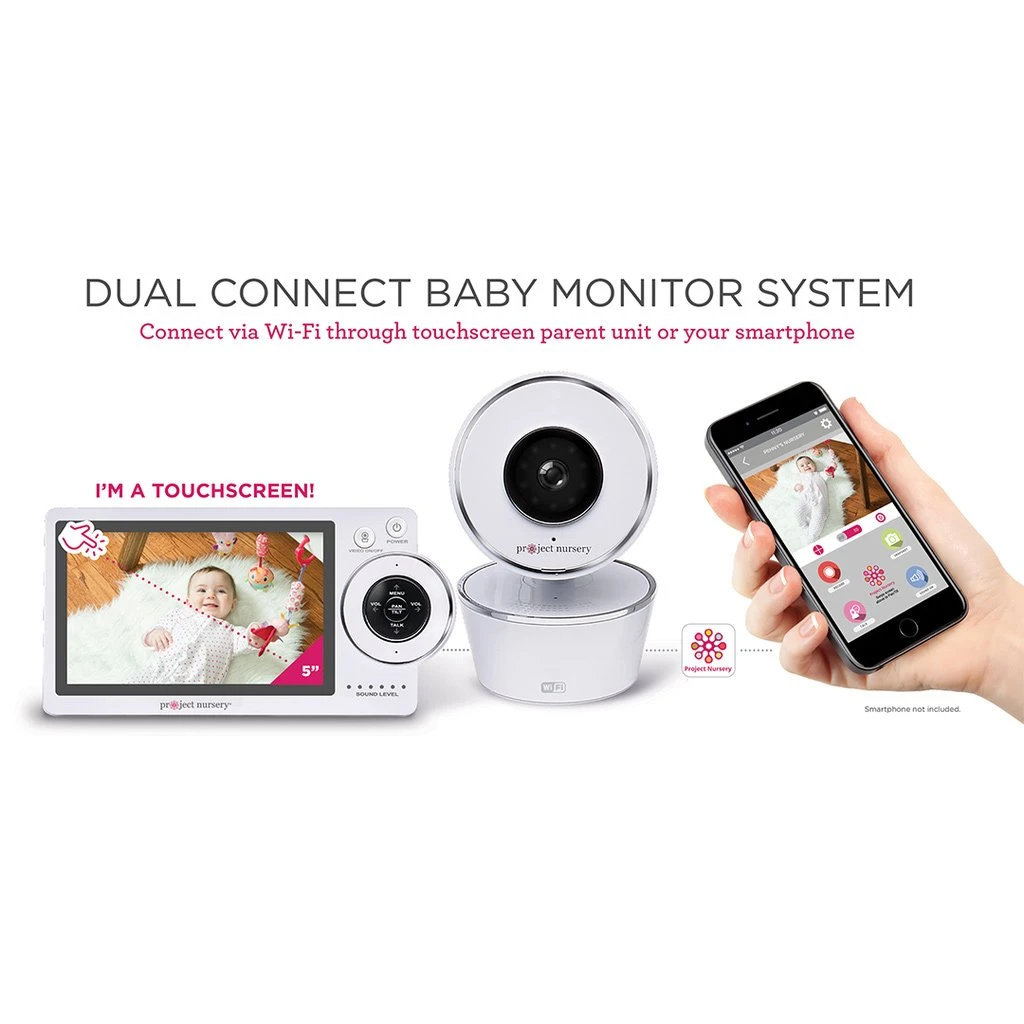 - Dual Connect: Wi-Fi connected for remote viewing on your iOS and Android devices using the Project Nursery App or local Wi-Fi viewing via 5″ dedicated parent unit within Wi-Fi range