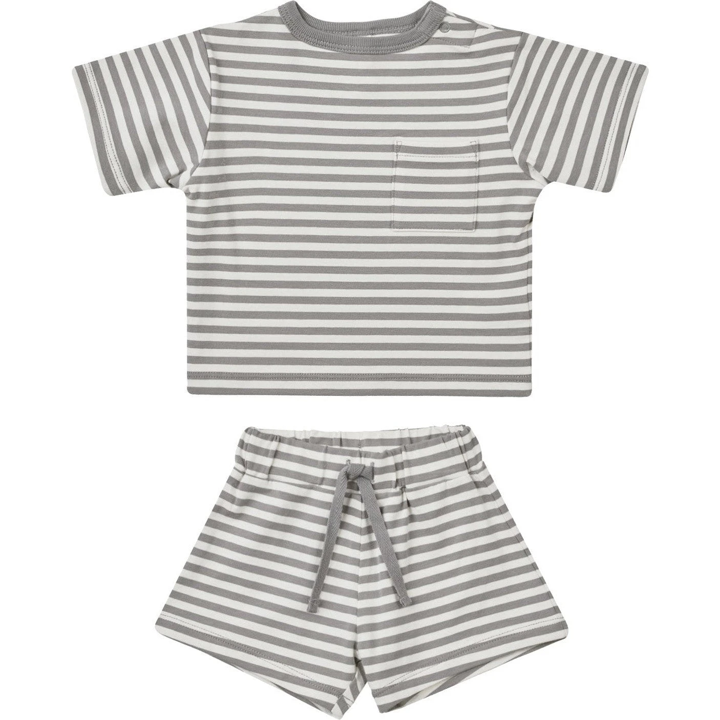 This boxy set made with soft jersey fabric, has a boxy pocket tee paired with shorts featuring an elastic waistband and fixed drawstring.