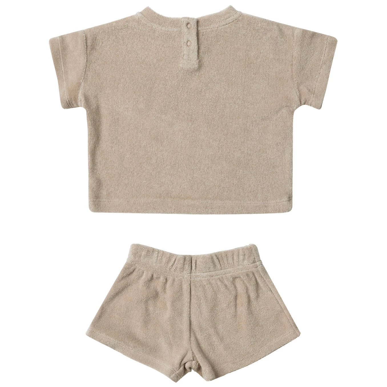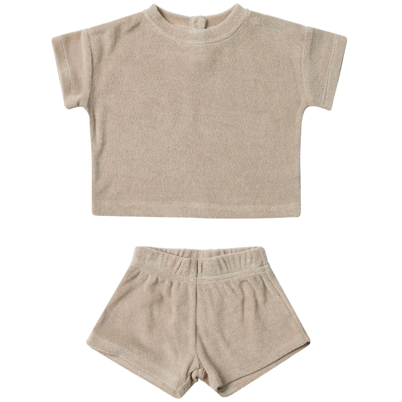 This set is an easy go-to for your little one this summer! It includes a relaxed fit tee with a snap placket at the back neck, and shorts with an elastic waistband.