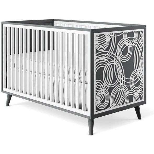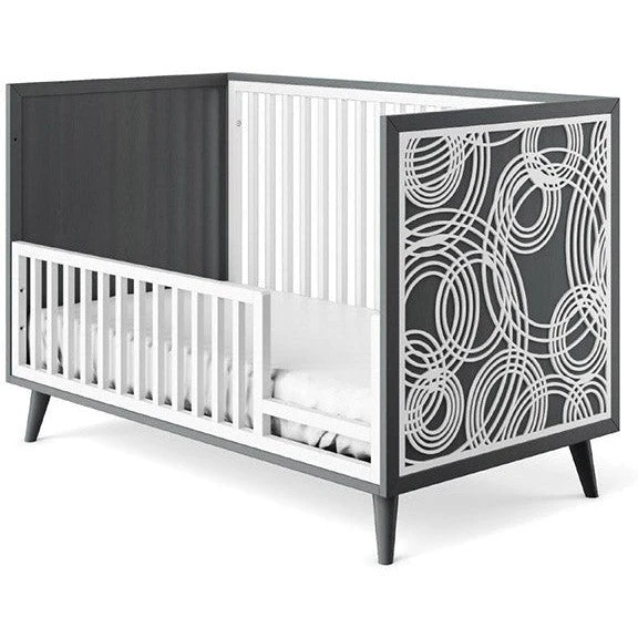 New York Crib is designed about the busy big city lifestyle, fit for small spaces with big ideas, contemporary in style with mid-century essence. The crib converts to Day bed and Toddler bed and has three mattress settings to maximize convenience. The Toddler rail can be purchase separately. The crib is available in one general finish, 2-tone (over 50 base options) or upgraded with Laser-cut panels or Eco-Leather inlays.