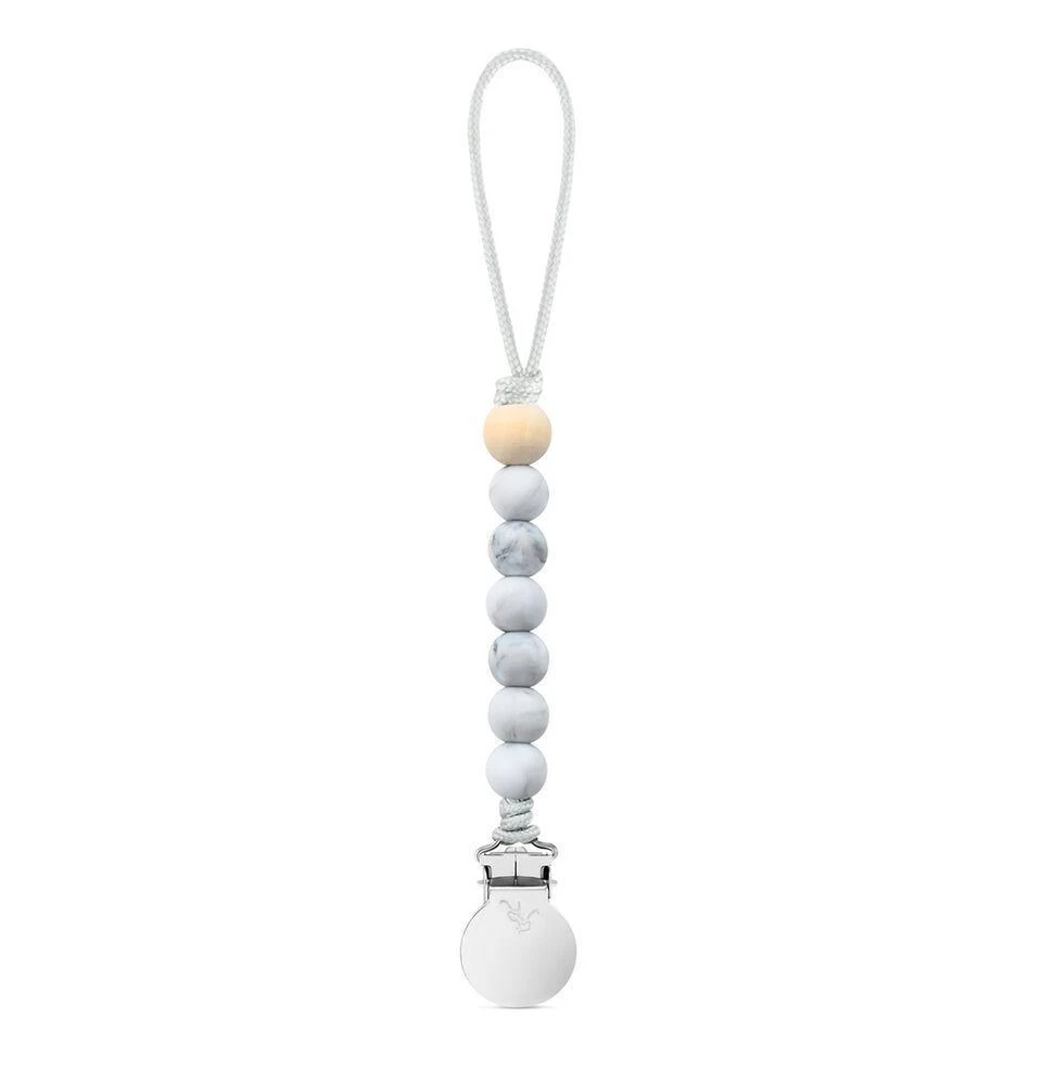 The Charley Cutie Clip is both a teether and a Cutie Clip in one. It is named after my daughter Charley and it is made using a strong nylon cord, six 100% food grade silicone beads, one natural unfinished wood bead, and one lead free Ryan & Rose clip. It is approximately 7.5″ long and is handmade in the USA using imported materials. The Charley Cutie Clip is CPSC compliant and has passed all safety testing.