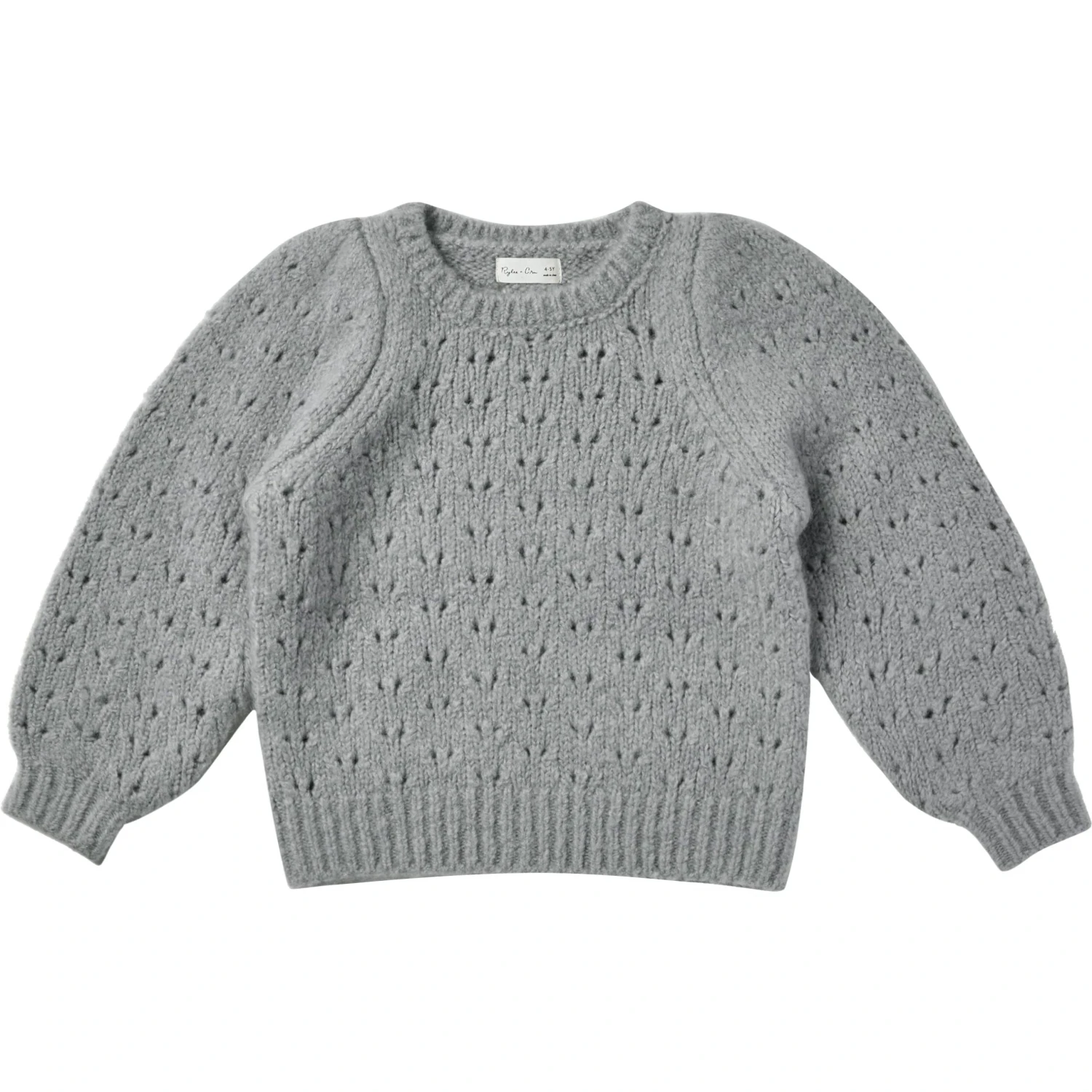 Super soft pullover sweater with blousy balloon sleeves and beautiful intricate pointelle pattern.