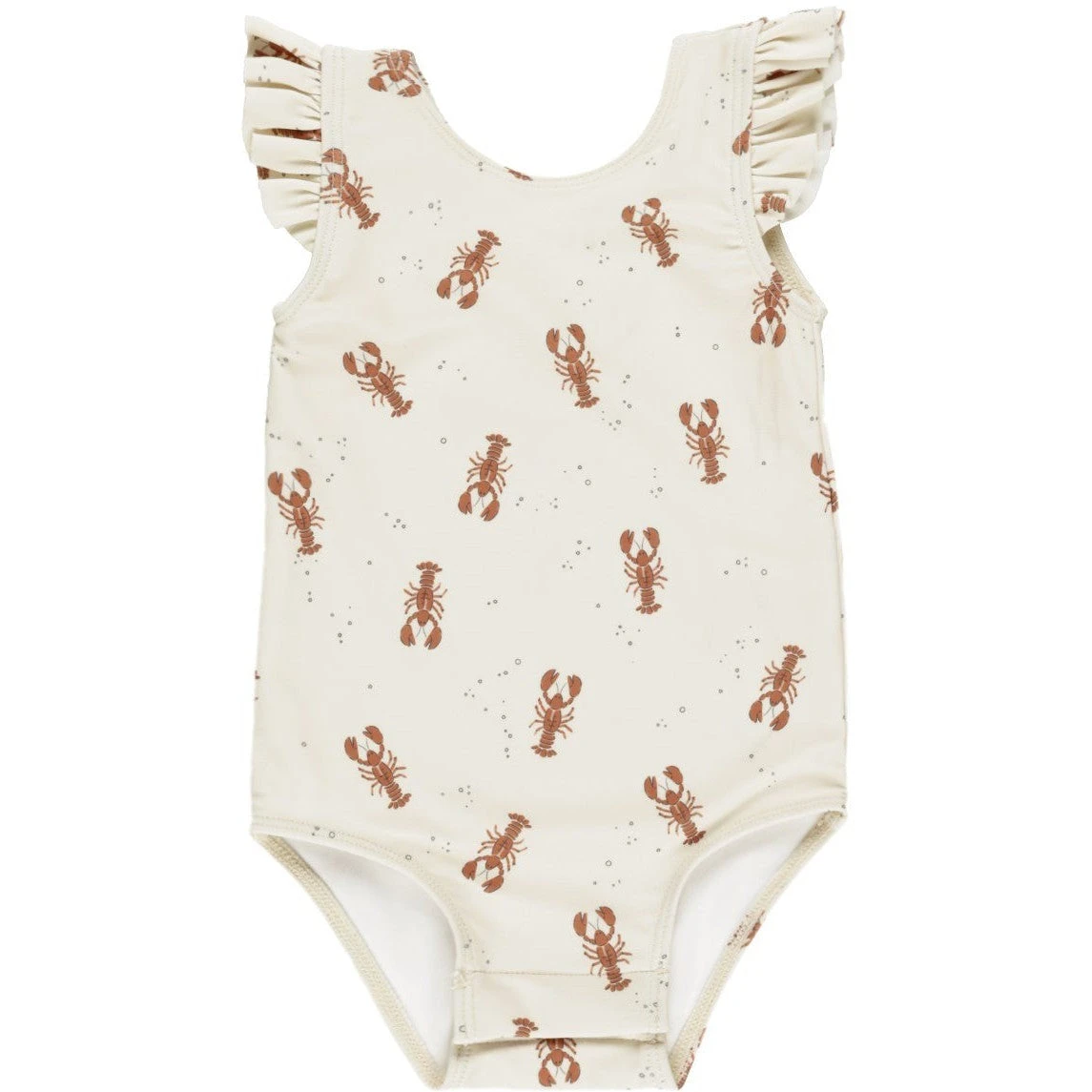 This one-piece swimsuit features sweet ruffled sleeves and snaps at the bottom for easy changing.