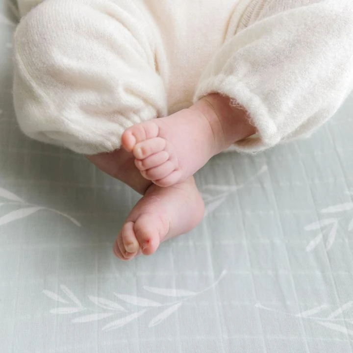 Cute, soft and durable. We have hit the trifecta with our Olive Branch muslin/cotton changing pad cover. Diaper duty just officially got better with this adorable pattern made from our soft muslin fabric combined with our new durable cotton. Use after use and wash after wash this cover is built to last through it all and will be the perfect accent to your nursery with its subtle sage green color with a simple leaf pattern. Make it a complete set with our Olive Branch crib sheet and swaddle blanket; all of which are boutique-quality products made by the hands of people we have personal relationships with.