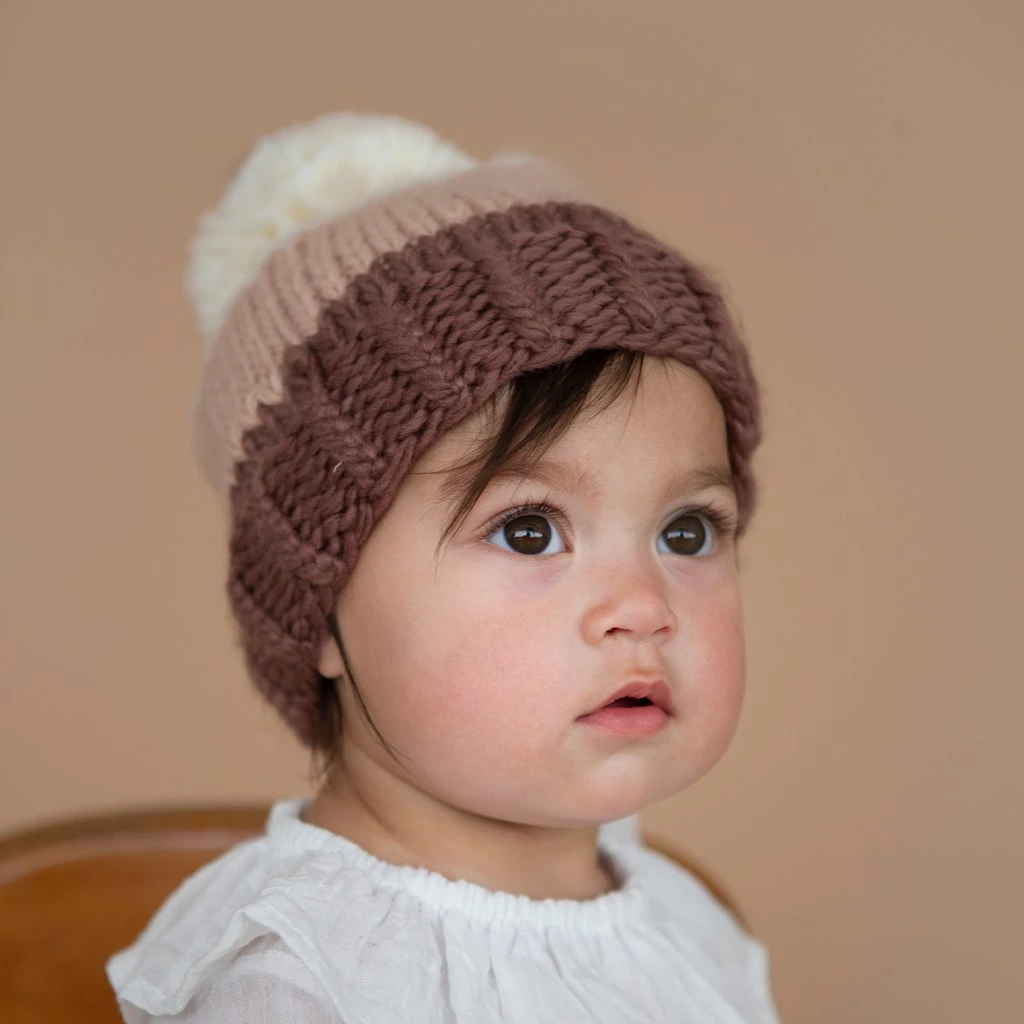 The Blueberry Hill Tri-Color Beanie - Mauve -Baby Go Round Store ma